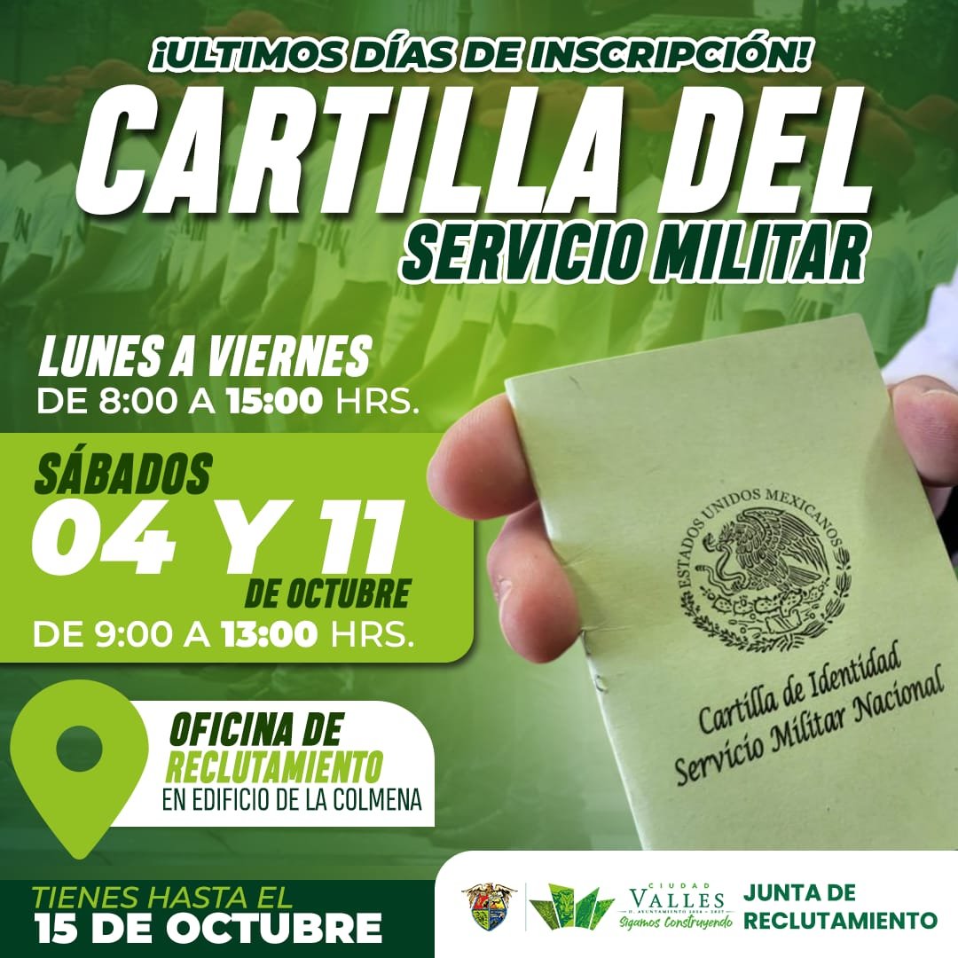 ✅ Este sábado 04 y 11 de octubre, la oficina de la Junta Municipal de Reclutamiento estará atendiendo a jóvenes interesados en realizar su trámite correspondiente para poder cumplir con sus obligaciones del Servicio Militar Nacional (SMN).