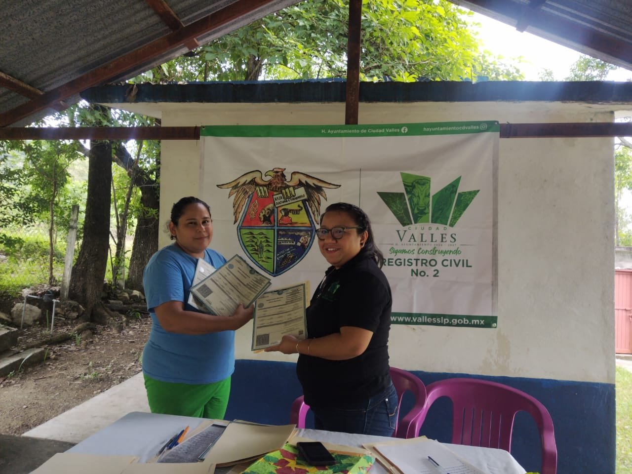 Esta actividad fue efectuada por la Oficialía 02 del Registro Civil de Ciudad Valles, a cargo de la Licenciada Rocío del Carmen Hernández Rubio, en coordinación con la delegada de Rascón, Olga María Landaverde Pacheco, y el presidente de Juntas de Participación Ciudadana del Ejido Canoas, Jaime Castillo Paz.