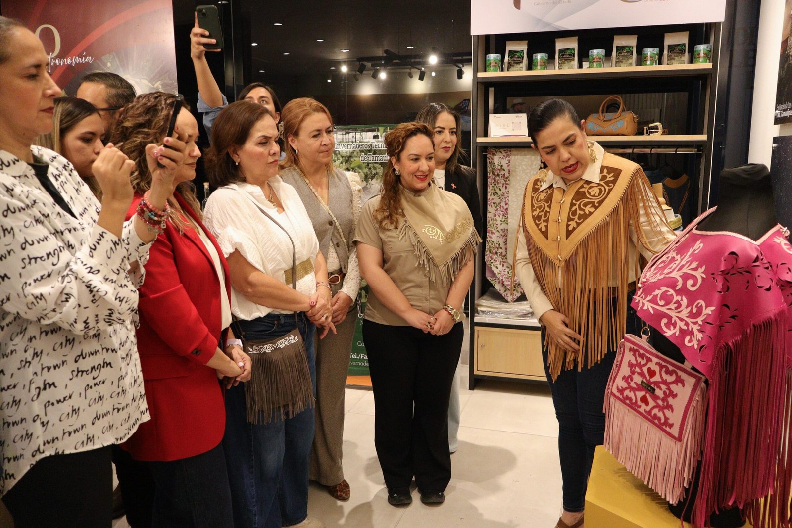 La Alcaldesa mantense declaró inaugurado el espacio de exhibición y venta que permitirá compartir con las y los tamaulipecos la riqueza cultural, gastronómica, artesanal y turística de la ciudad más dulce. Acompañada por integrantes del Cabildo y representantes de la Secretaría de Turismo de Tamaulipas, la Presidenta Municipal encabezó la apertura de la exposición y comercialización «El Mante en Punto Tamaulipas», escaparate que reúne a más de diez expositores mantenses, quienes presentaron productos típicos, artesanías y platillos representativos de la región.