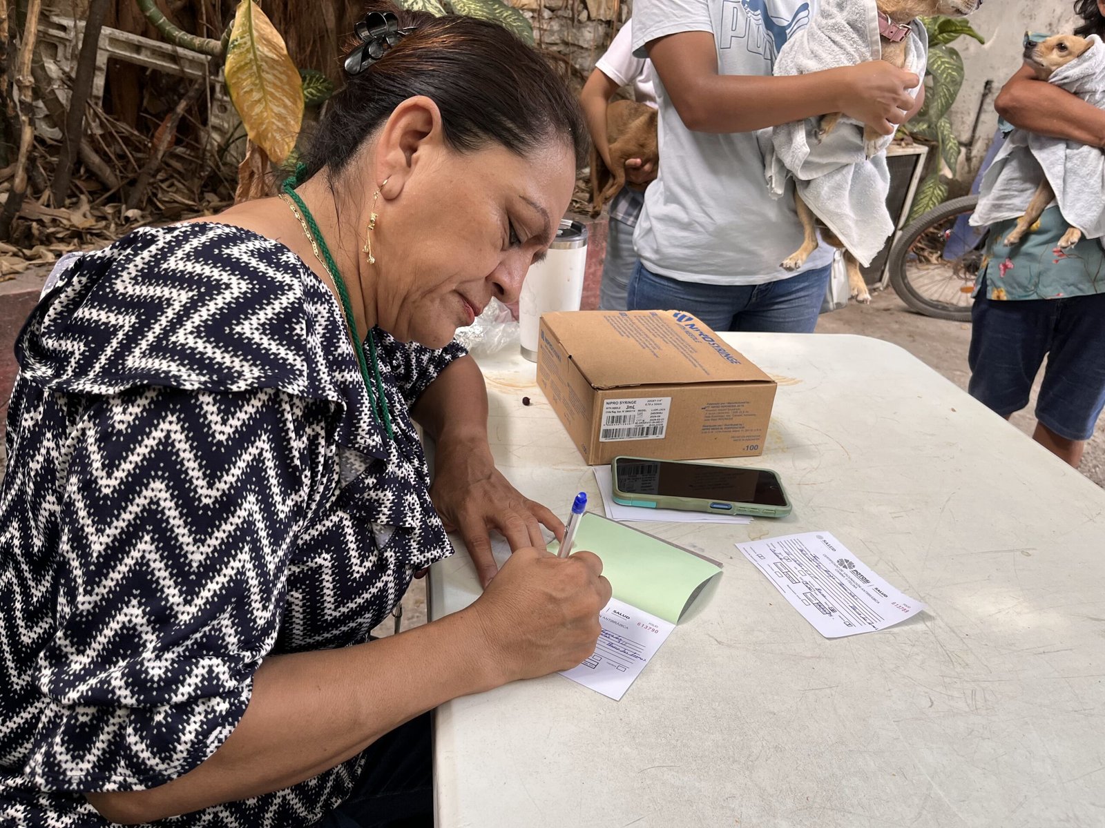 Indicó que esta actividad forma parte de la jornada de vacunación antirrábica, coordinada por la Jurisdicción Sanitaria Número V, y agradeció la buena respuesta de la ciudadanía. Asimismo, destacó la valiosa colaboración de dos voluntarias del Instituto de Ciencias y Estudios Superiores de San Luis Potosí (ICESS), quienes participaron en las labores de aplicación de vacunas, sumándose al esfuerzo institucional.
