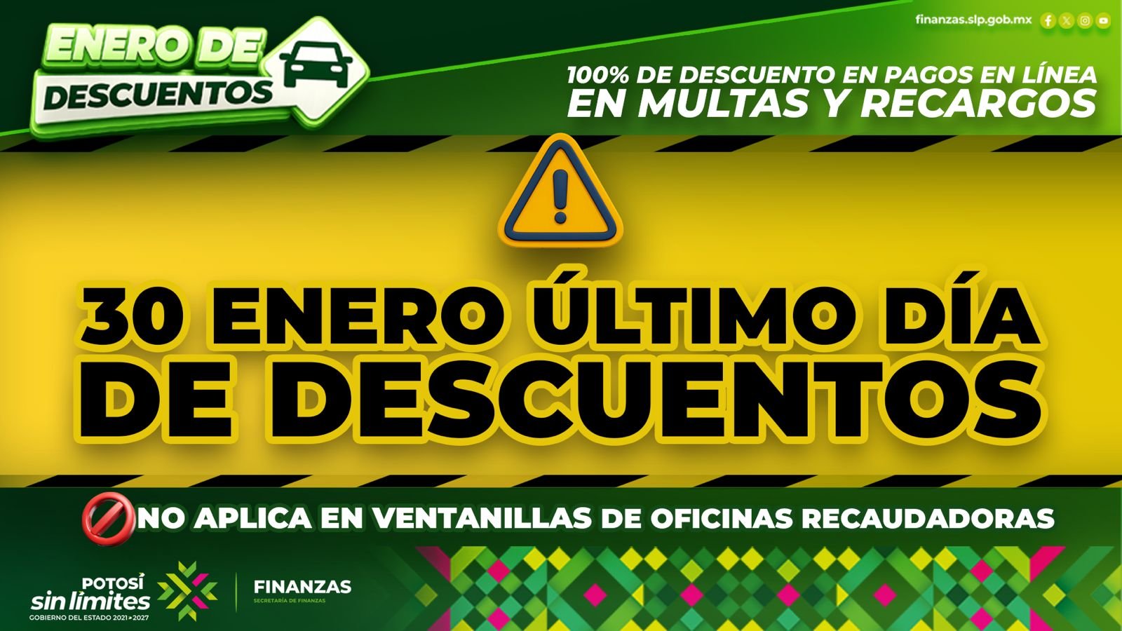 30 DE ENERO, ÚLTIMO DÍA DE 100% DE DESCUENTOS