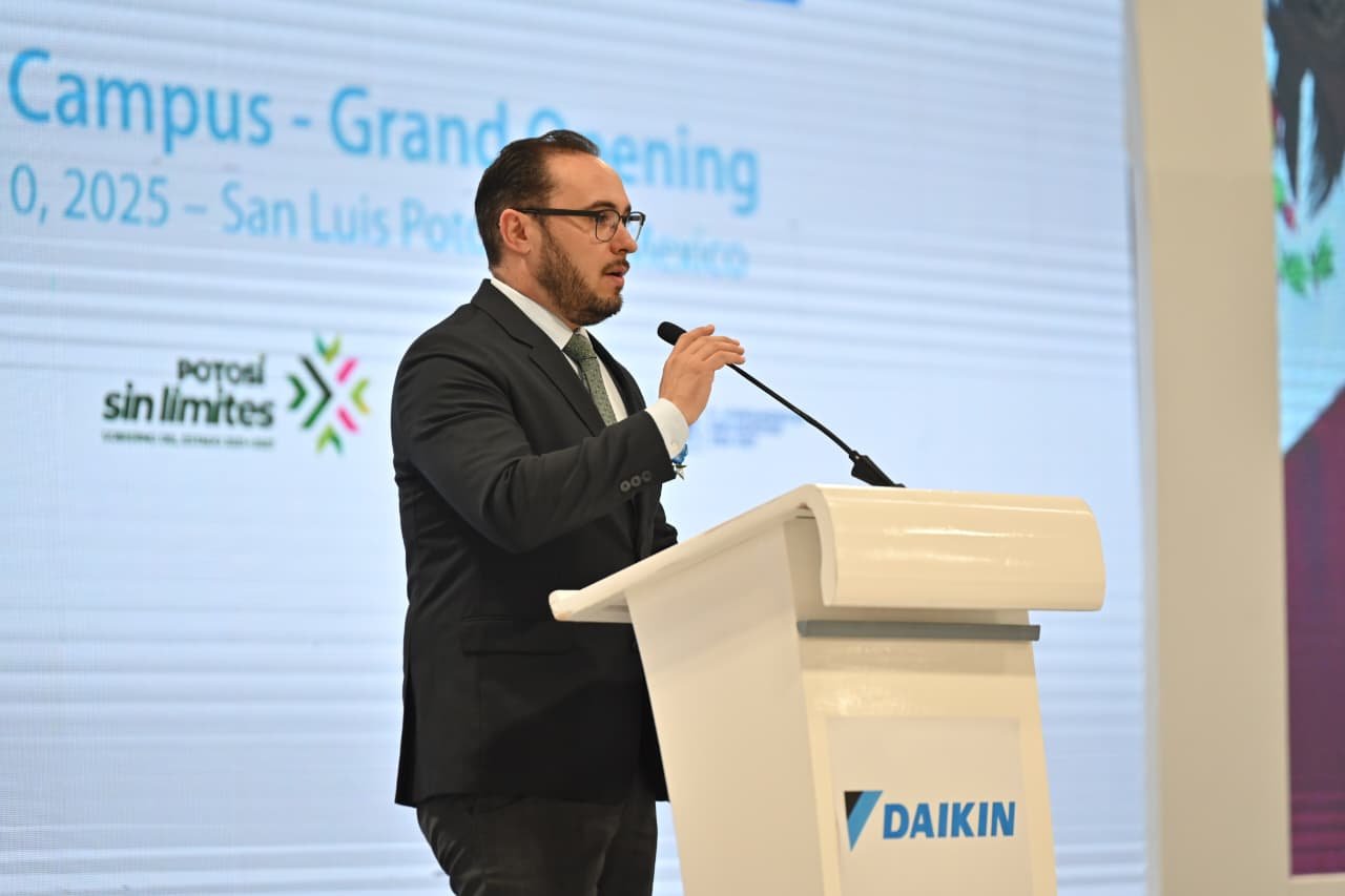 Ricardo Gallardo Cardona, Gobernador de San Luis Potosí, encabezó la apertura del nuevo Complejo Daikin Manufacturing, proyecto de la empresa japonesa, fabricante de aires acondicionados y sistemas de refrigeración, con el que invirtió en el Estado 310 millones de dólares, lo que generará más de 3 mil empleos directos para las y los potosinos, constatando, así, el importante avance que la entidad mantiene en su economía y la inversión industrial.