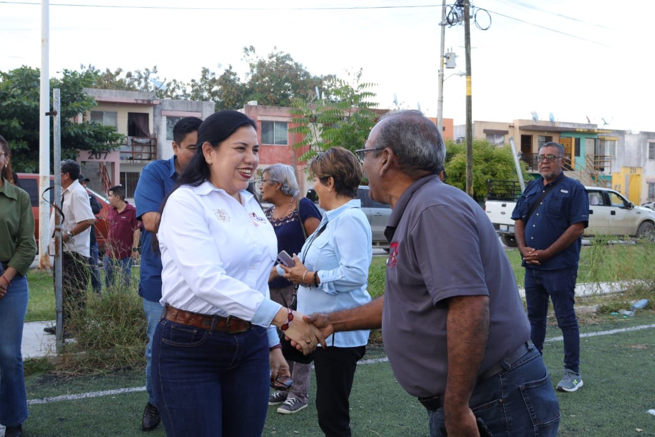 En representación de los vecinos del Fraccionamiento Santa Mónica, Rosario Reyes Barrientos agradeció el apoyo de la Alcaldesa para rehabilitar la cancha de pasto sintético, en beneficio directo de niños y jóvenes de este amplio sector.