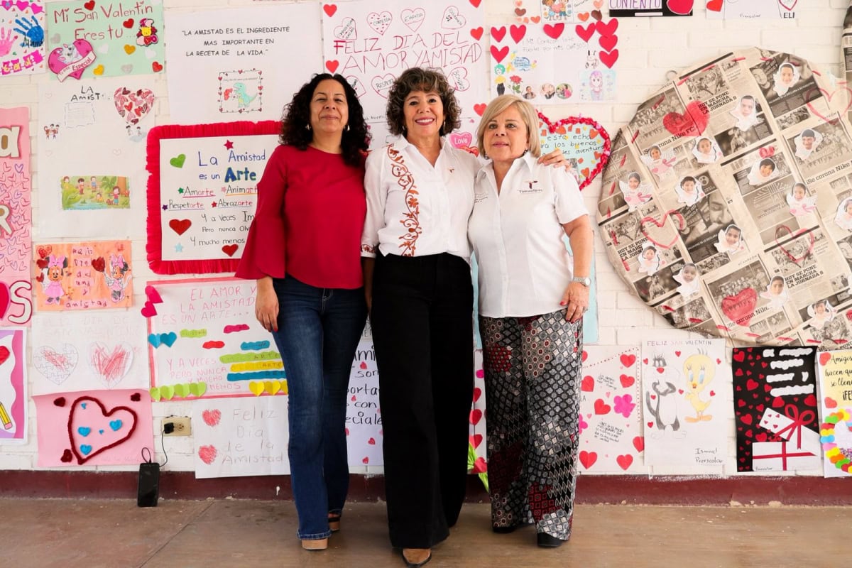 Febrero 13 de 2026 Ciudad Victoria, Tamaulipas.- La comunidad escolar del Centro de Atención Múltiple “Alejandrina Boijseauneau”, hizo entrega de un reconocimiento a la Secretaría de Bienestar Social por las obras realizadas para el mejoramiento educativo dentro del Fondo de Infraestructura Social para las Entidades (FISE). En el marco de una festividad escolar que se desarrolló con actividades deportivas, artísticas y de entretenimiento para la celebración del Día del Amor y la Amistad, la directora del plantel, Profra. Angélica Morales Riestra, dio apertura a la ceremonia en la que dijo es propicio agradecer al gobernador Américo Villarreal Anaya, la inversión en obras sociales básicas provenientes de la SEBIEN. Detalló que a través de dicha inversión, se dotó de una techumbre y barda perimetral a las instalaciones del CAM, que han dado bienestar a la comunidad educativa, al contar con una infraestructura adecuada, segura y digna. Por su parte, Silvia Casas González, secretaria de Bienestar Social, hizo uso de la palabra para dar las gracias y hacer llegar el saludo del gobernador Américo Villarreal Anaya; “reciban un cordial saludo del gobernador del estado Américo Villarreal Anaya, quien está pendiente y atiende las necesidades del sector educativo”, dijo. El FISE, explicó Casas González, es el fondo de infraestructura social que tiene la SEBIEN, proveniente del Gobierno de México que encabeza la presidenta Claudia Sheinbaum Pardo,  y se induce entre otros sectores al educativo, por lo que exhortó a presentar solicitudes de obras de infraestructura que puedan entrar a este mecanismo de acuerdo a las reglas de operación que lo rige. En ese sentido aseguró que en cumplimiento a la política humanista y de transformación para el bienestar impulsada en Tamaulipas, los programas de talento deportivo y los de cultura y arte con que se cuenta por medio del INDE y del ITCA, se harán extensivos a los Centros de Atención Múltiple para beneficio y disfrute de las y los alumnos. “Queremos traerles arte, cultura y deportes; cuentan con nuestro apoyo y muy especialmente cuentan con el apoyo de nuestro gobernador Américo Villarreal Anaya”, puntualizó. A este evento, acudieron la supervisora de la Zona Escolar Número 4 de Educación Especial, profesora María Cecilia Robles Riestra, directivos y asesores de Zona Escolar: Maestro José Fructuoso Ornelas Hernández, María Guadalupe Moya Cano, María del Refugio Valles Fuentes, Silvia Lucy Salazar González, Rosa Gabriela San Germán Riestra, San Juana Vázquez Pineda, Marina Martínez Herrera; así también alumnas, alumnos y padres y madres de familia quienes integran la comunidad escolar del CAM Tamaulipas.
