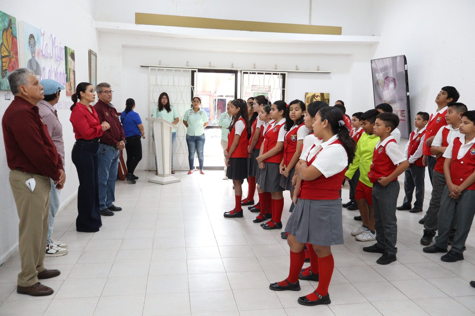En este recorrido estuvieron presentes: el profesor Magdiel Saldaña Salce, la regidora comisionada en Cultura, Judith Amaro Rivas, el cronista Ernesto Ramírez Hernández y la Presidenta Municipal Patty Chío , quienes acompañaron y fomentaron el acercamiento de la niñez al arte, la historia y la cultura del municipio.