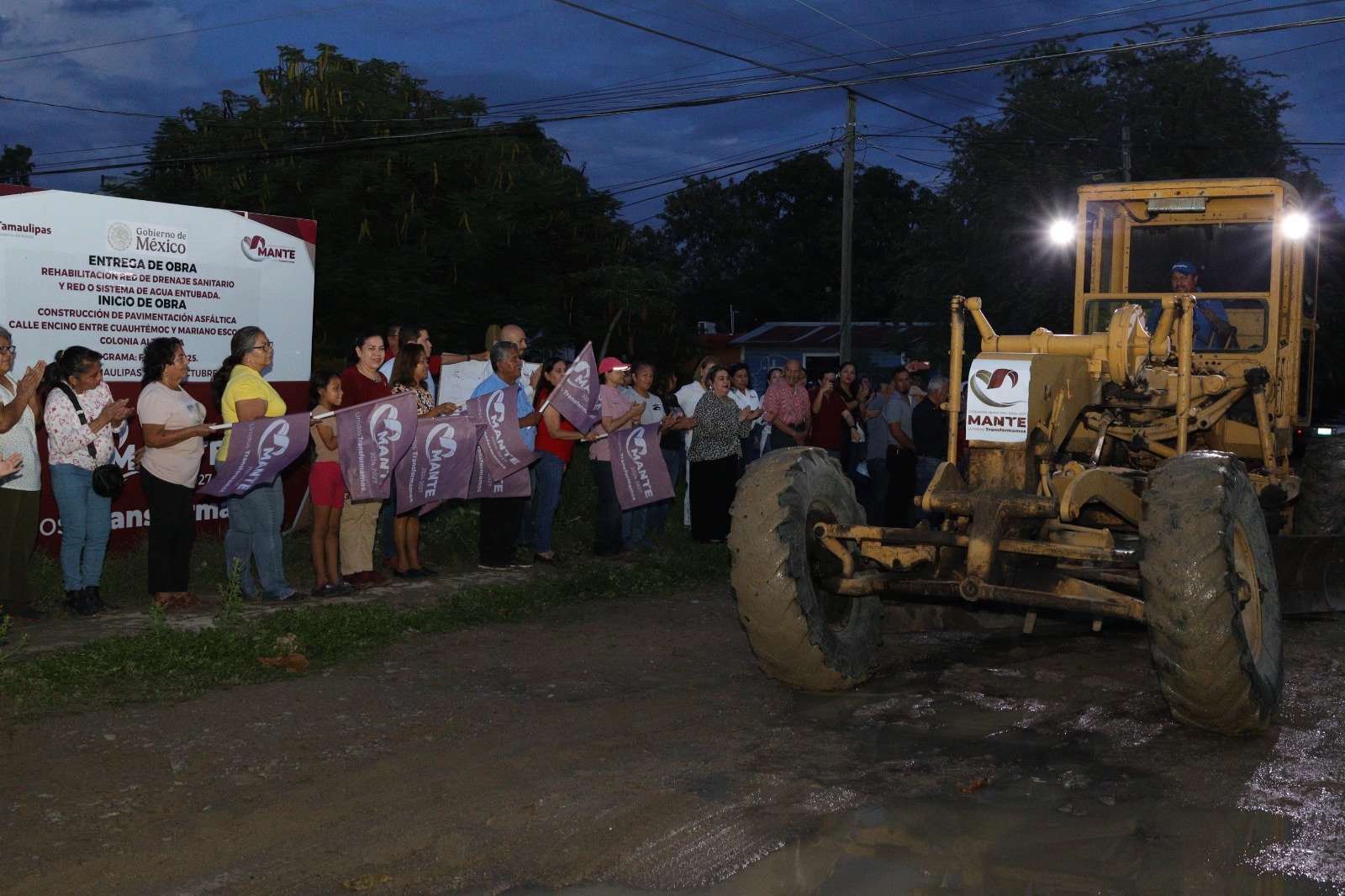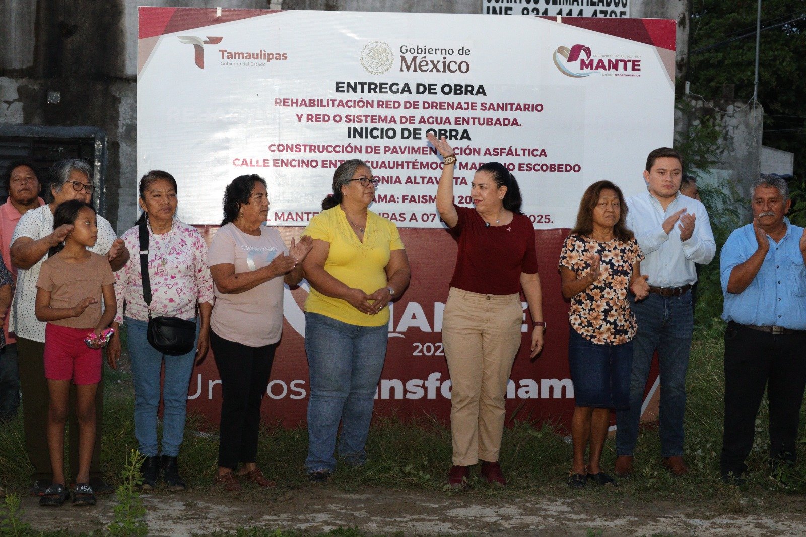 En la colonia Altavista se realizó la misma entrega en agua potable y drenaje, además de dar el banderazo de pavimentación en la calle Encino,