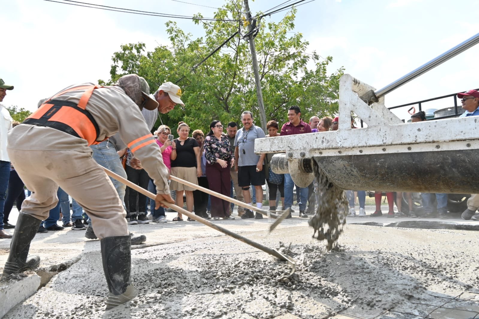 *Con apoyo de la concretera móvil se rehabilita la calle Víctor Saavedra de la colonia Linares.