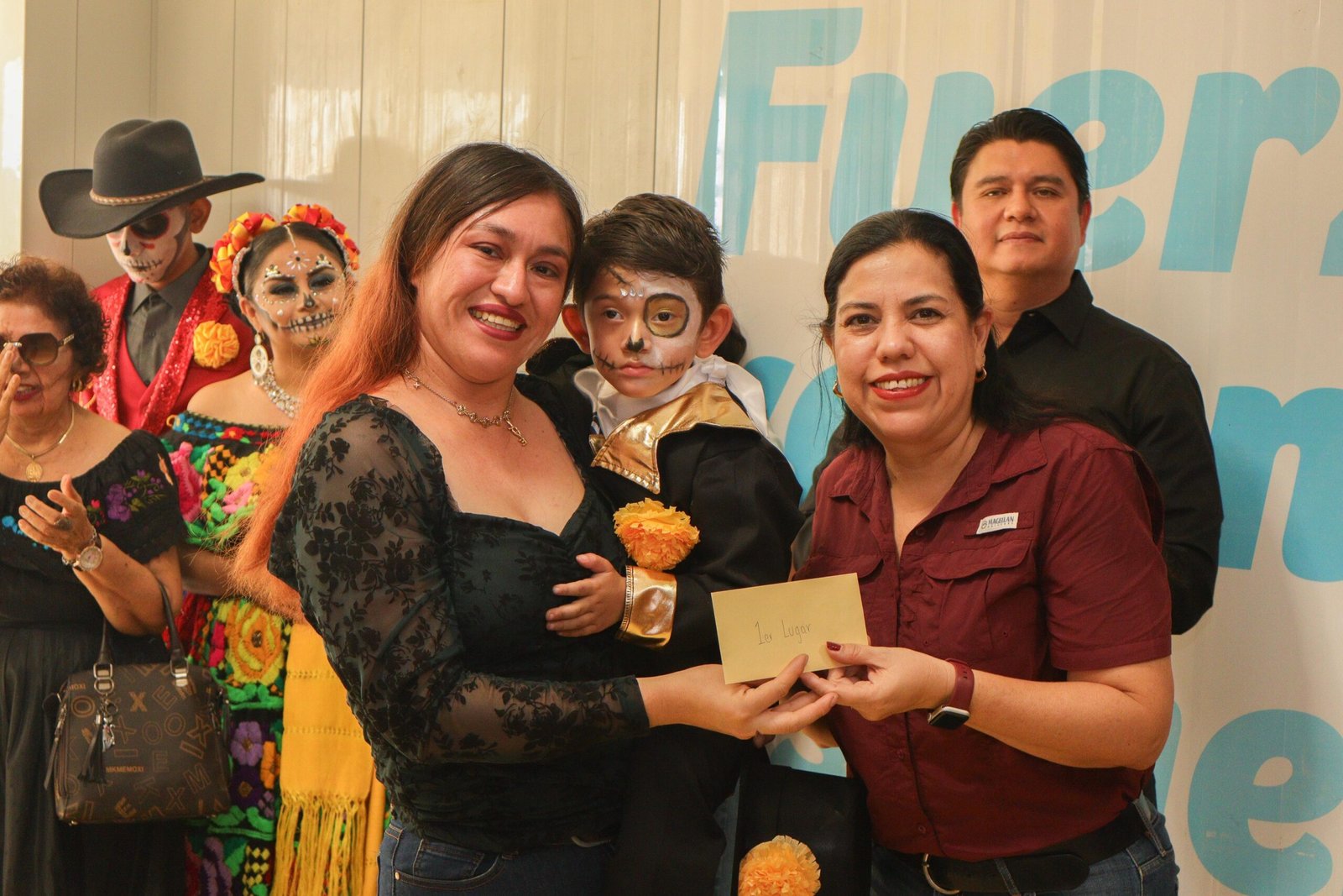 * Une a familias en concurso de catrinas y catrines.