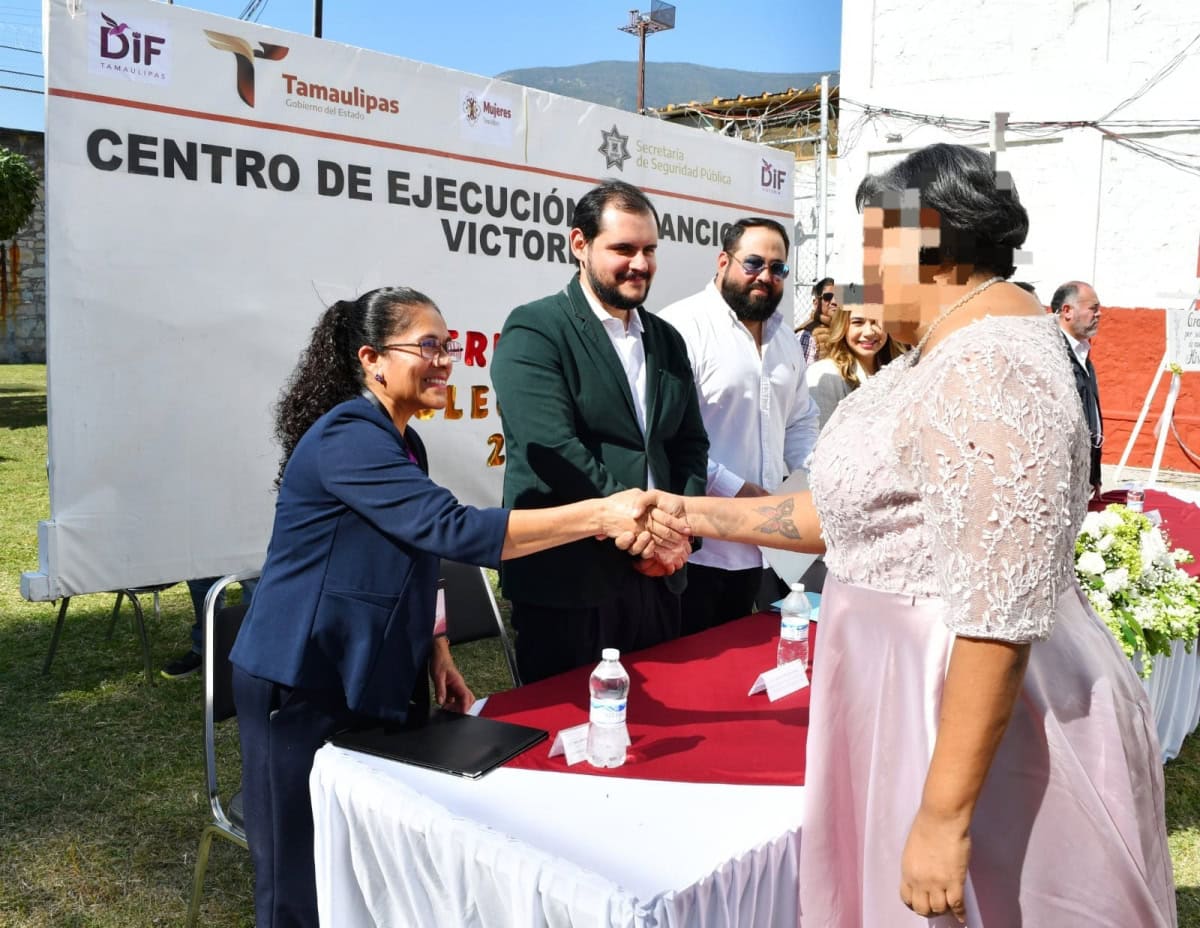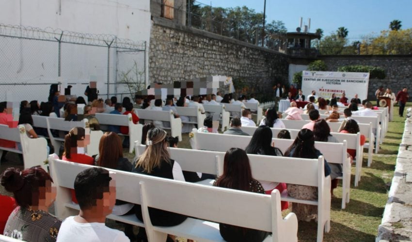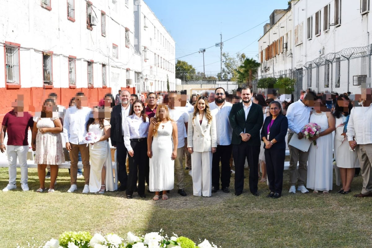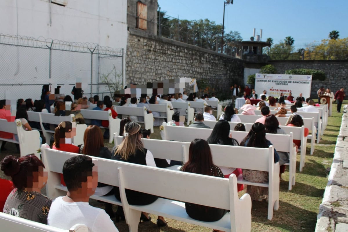 Febrero 04 de 2026 Ciudad Victoria, Tamaulipas.– Con base en el respeto a los derechos de las personas privadas de la libertad (PPLs) y en la estrategia de reinserción social, que tiene a las relaciones familiares entre sus ejes fundamentales, 21 parejas formalizaron su unión al interior del Centro de Ejecución de Sanciones (CEDES) de Ciudad Victoria. La ceremonia de matrimonios colectivos fue posible gracias a la sinergia entre la Secretaría de Seguridad Pública de Tamaulipas (SSPT), el Sistema DIF Victoria, la Dirección de Oficialías del Registro Civil y el Instituto de las Mujeres en Tamaulipas, y consistió en el enlace legal de 11 parejas integradas por PPLs y 10 entre residentes del CEDES Victoria y personas externas. “La unión en pareja que celebramos en esta fecha cobra relevancia para continuar con su programa encaminado a su reinserción a la sociedad. En lo personal, me queda desearles una vida próspera en pareja, esperando que se encuentren orgullosos del paso que están dando el día de hoy”, manifestó el director del CEDES Victoria, Mario Alberto Hernández Aguirre. Tras firmar y recibir los documentos legales, las parejas recién casadas celebraron una recepción que contó con la asistencia de sus seres queridos, quienes degustaron mole, pastel y refrescos, y participaron en las tradiciones que distinguen a las bodas mexicanas, tales como bailar el vals, “la víbora de la mar” y el lanzamiento del ramo. En representación del secretario de Seguridad Pública de Tamaulipas, Carlos Arturo Pancardo Escudero, asistió el subsecretario de Ejecución de Sanciones y Reinserción Social, Lorenzo Raúl Ruiz Vázquez, quien estuvo acompañado de la encargada del despacho de la Oficialía Número Uno del Registro Civil, María Antonia Maldonado González; la directora jurídica del Instituto de las Mujeres en Tamaulipas, Issa Graciela Edgar Álvarez, quien acudió en representación de la titular de esta dependencia, Marcia Benavides Villafranca; y personal del Sistema DIF Victoria.