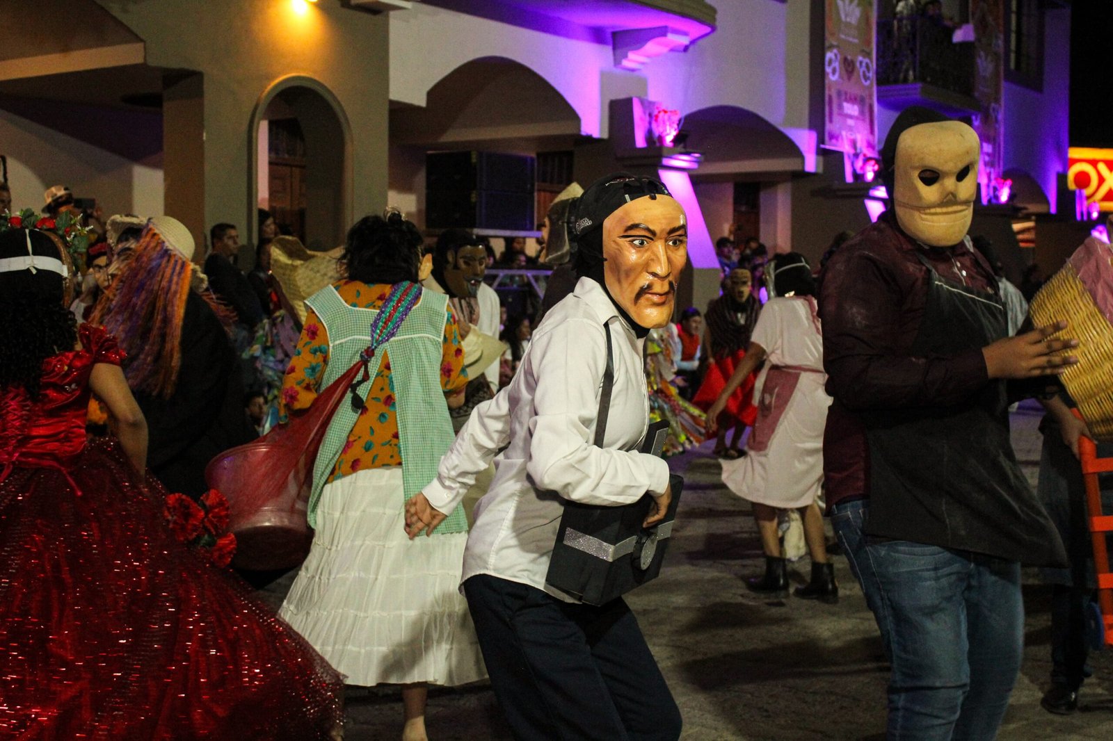 El Presidente Municipal David Armando Medina Salazar, acompañado de su esposa y Presidenta del Sistema Municipal DIF, Ena Avendaño Uscanga, recibieron desde el balcón de Palacio Municipal a cada una de las comparsas de huehues que danzaban los sones tradicionales a su paso, además de ser testigos del talento de los participantes en cada uno de los contingentes que hicieron tributo a nuestras tradiciones y costumbres.