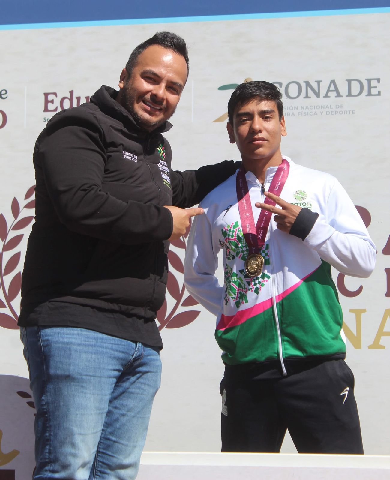 Al refrendar el apoyo sin límites a deportistas que brinda el Gobernador Ricardo Gallardo Cardona, el director general del Instituto Potosino de Cultura Física y Deporte (Inpode), Francisco Javier Serrano Altuzar, acompañó a la delegación potosina y les impuso las medallas a Jesús Gilberto Borrego Lechuga (oro en Para Triatlón), Samuel Ramsés Leura Vázquez (oro en Para Acuatlón) y José Miguel Castro (plata en Para Triatlón), compartiendo así la emoción del logro y el espíritu deportivo.