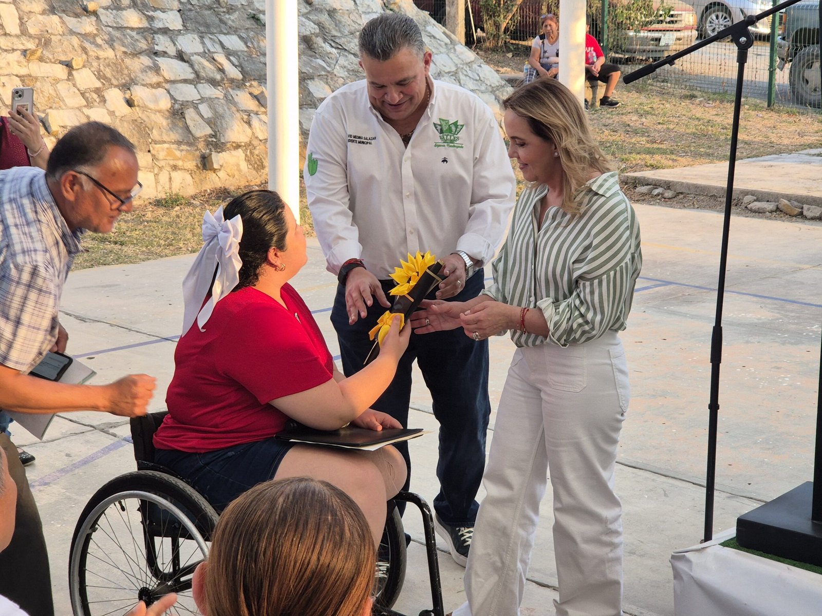 Paloma Herrera Rojas, a nombre de las y los Integrantes del Club Huastecos de Corazón, hizo entrega de un reconocimiento al edil vallense y un detalle a la Presidenta del SMDIF, por apoyar a las personas con discapacidad, generando espacios que permitan su desarrollo integral, fortaleciendo sus habilidades y promoviendo su plena inclusión en la vida social.