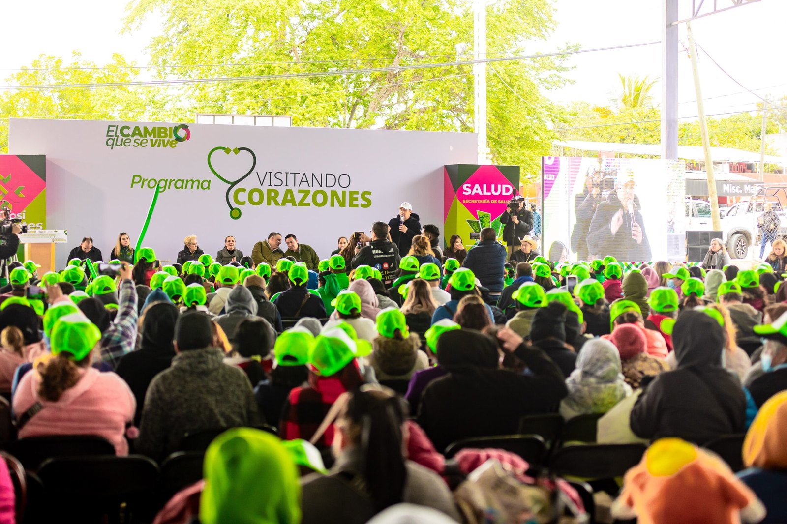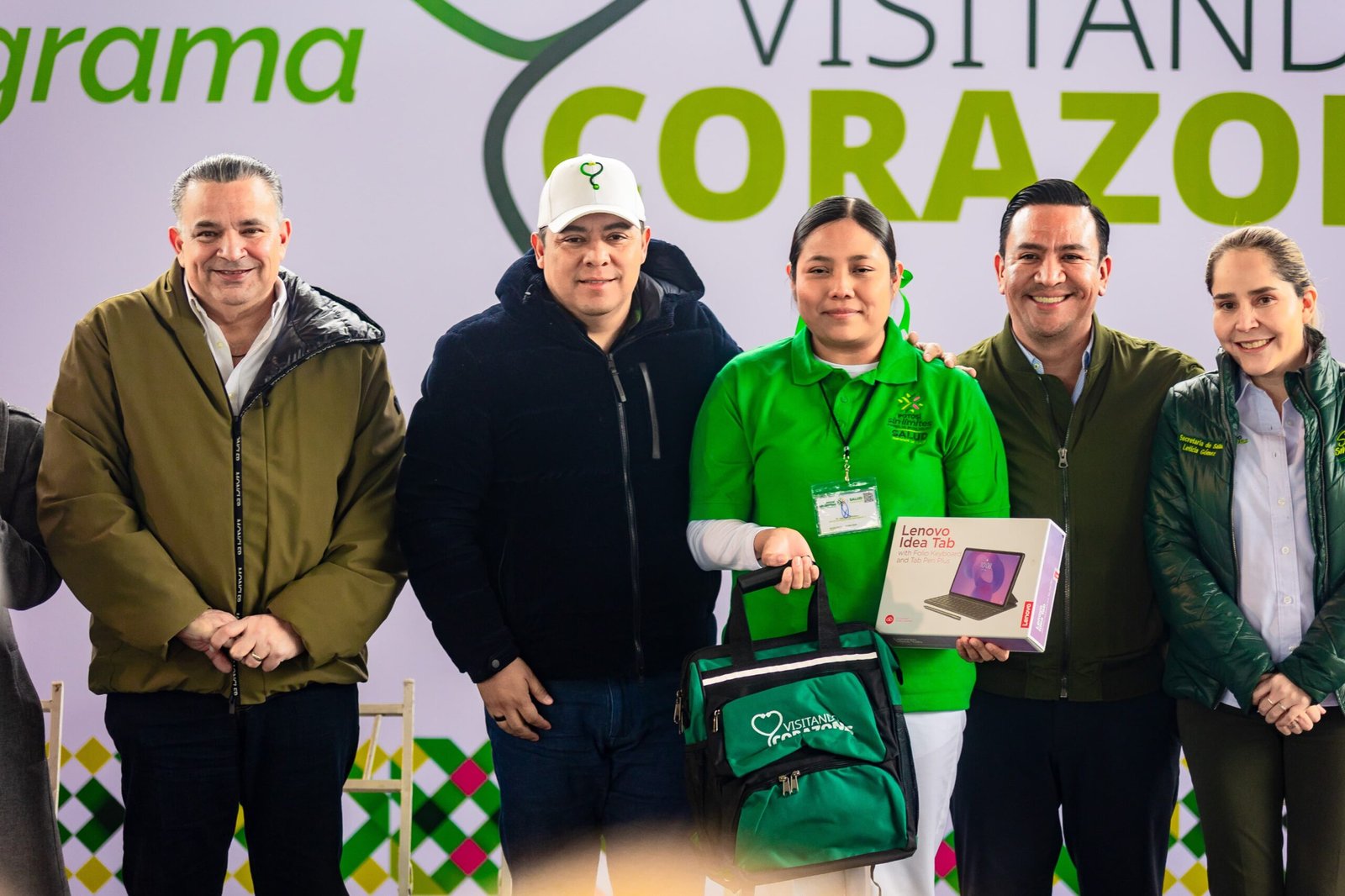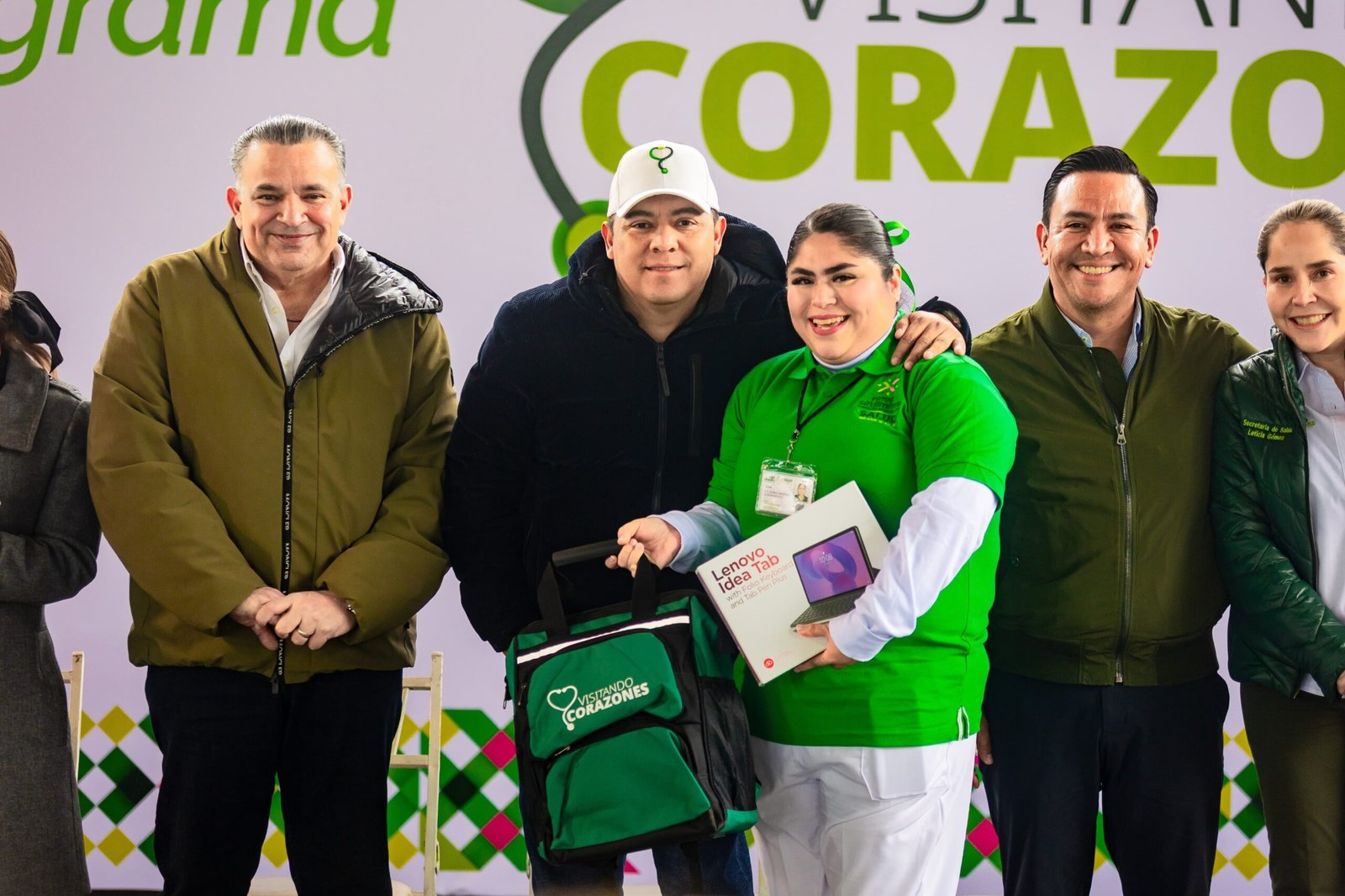 En su mensaje, el Gobernador de San Luis Potosí, Ricardo Gallardo Cardona, destacó que el programa «Visitando Corazones» representa un cambio profundo en la forma de atender la salud de las familias potosinas, al acercar brigadas médicas integradas por enfermeras y enfermeros que recorrerán casa por casa y colonia por colonia, brindando atención permanente.