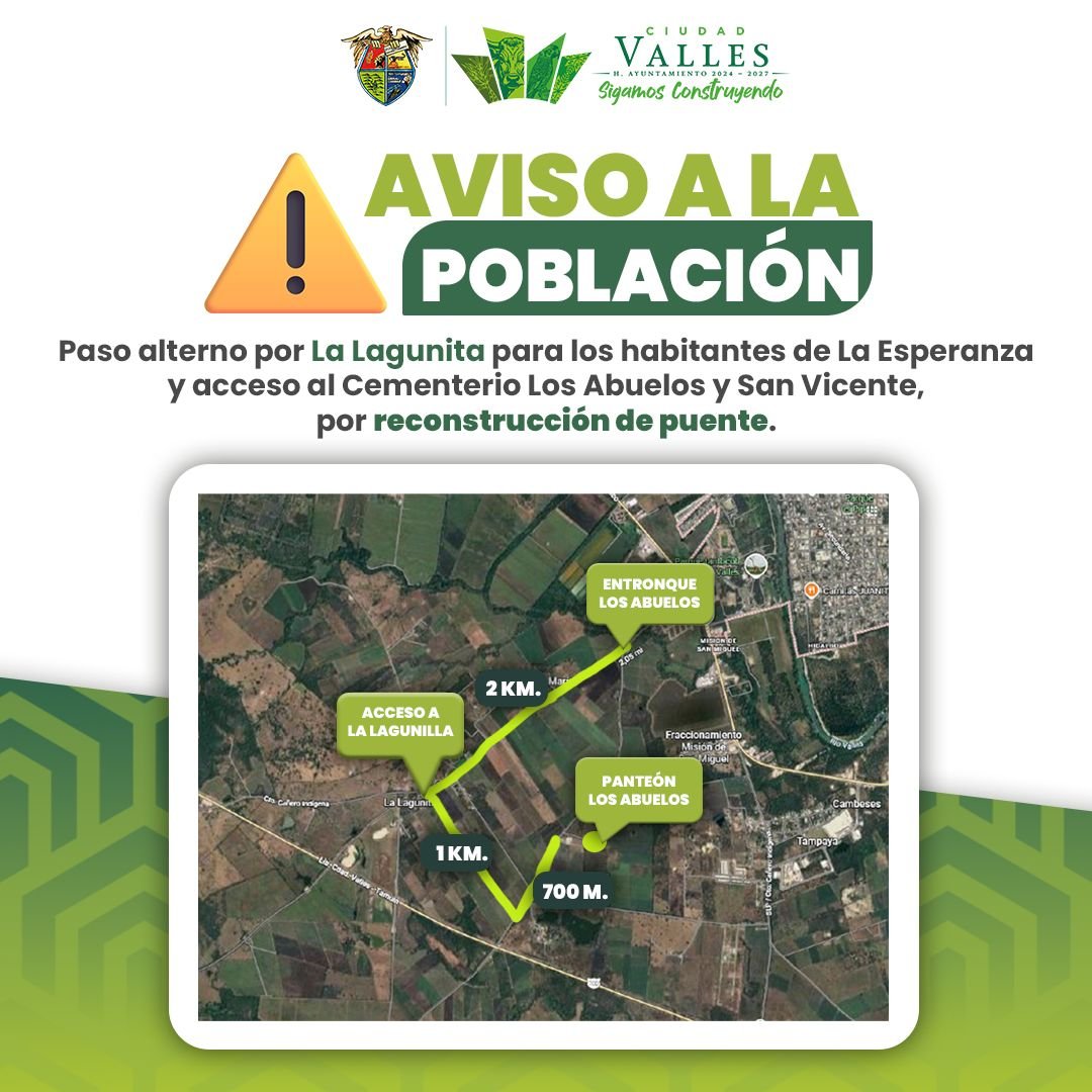 CIUDAD VALLES, S.L.P.- El H. Ayuntamiento de Ciudad Valles, a través de la Coordinación de Desarrollo Social (CODESOL), informa sobre los trabajos de rehabilitación que se estarán realizando a partir de este martes 4 de noviembre, en el puente conocido como “Los Abuelos”, y que conecta con la localidad de La Esperanza.