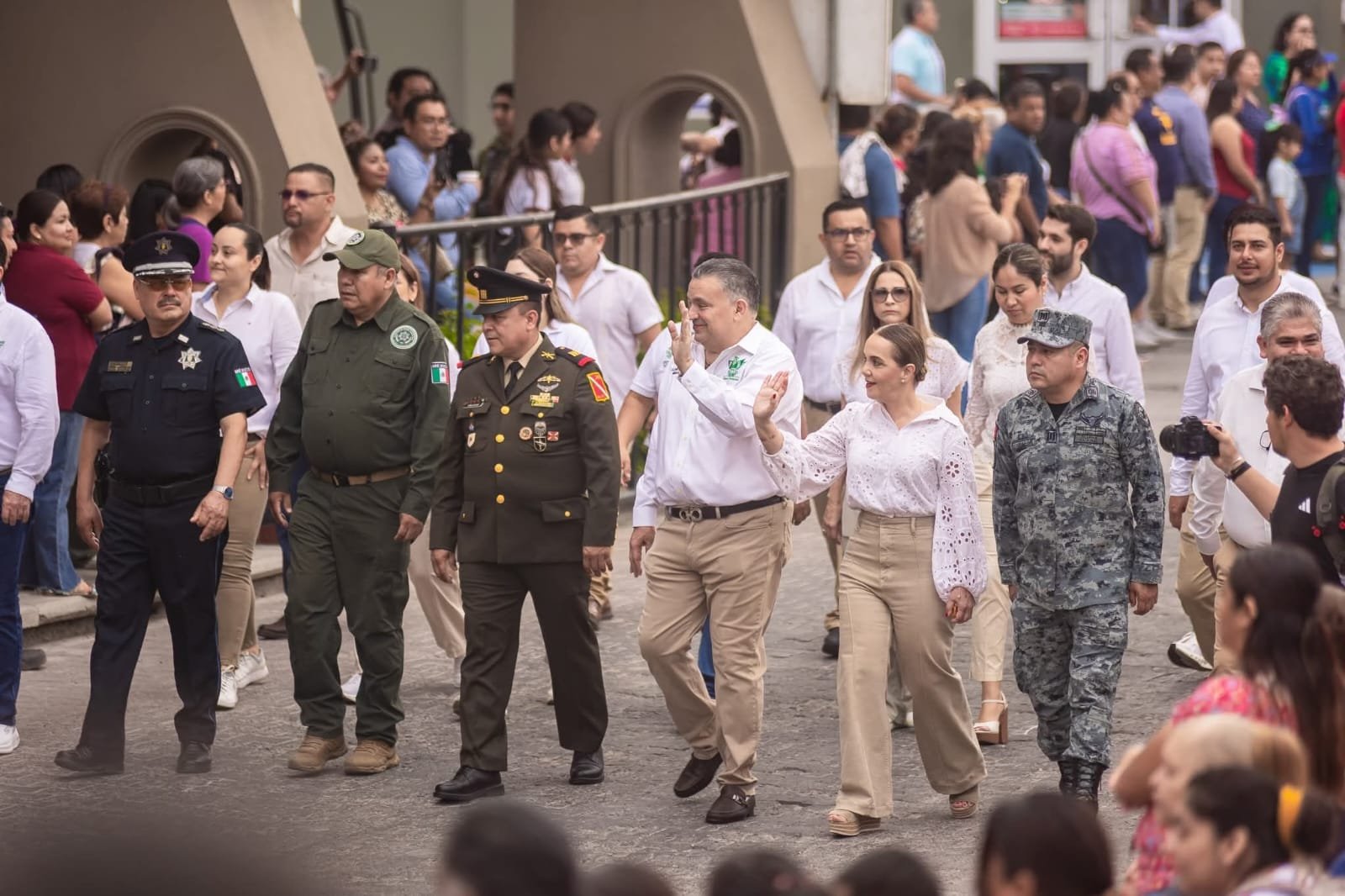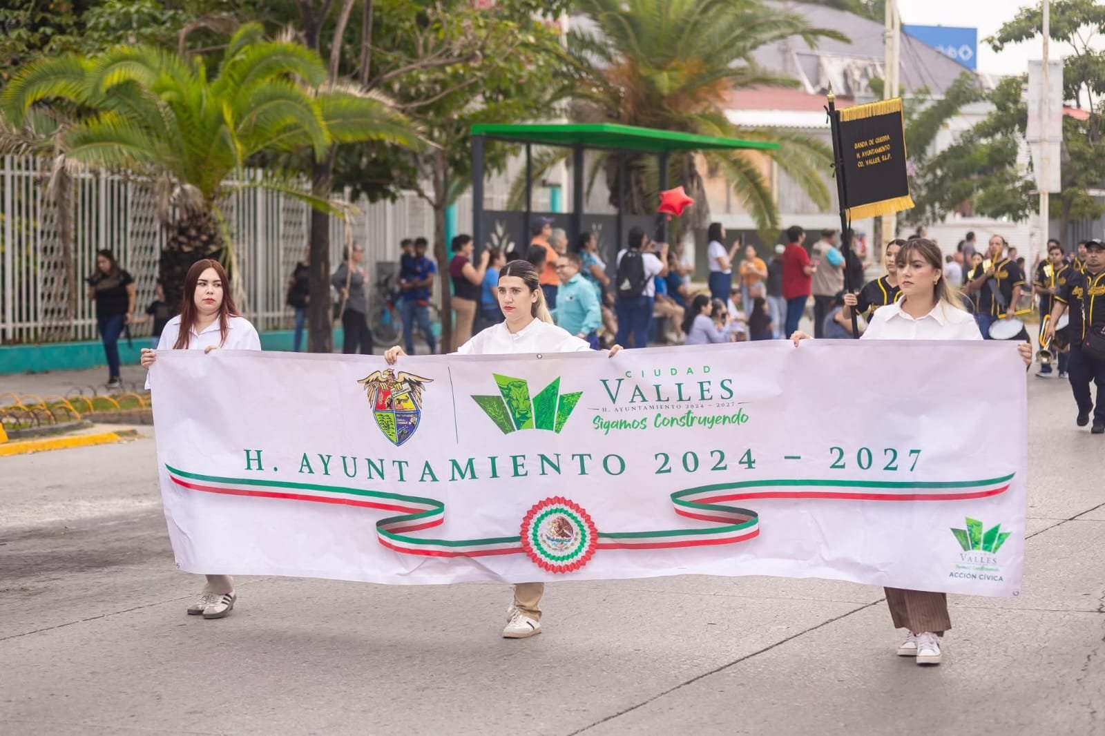 CIUDAD VALLES, S.L.P. – El Presidente Municipal David Armando Medina Salazar, acompañado de la Presidenta del Sistema Municipal DIF, Ena Avendaño Uscanga, encabezaron la mañana de este jueves 20 de noviembre el desfile cívico-deportivo en conmemoración al CXV Aniversario del Inicio de la Revolución Mexicana.
