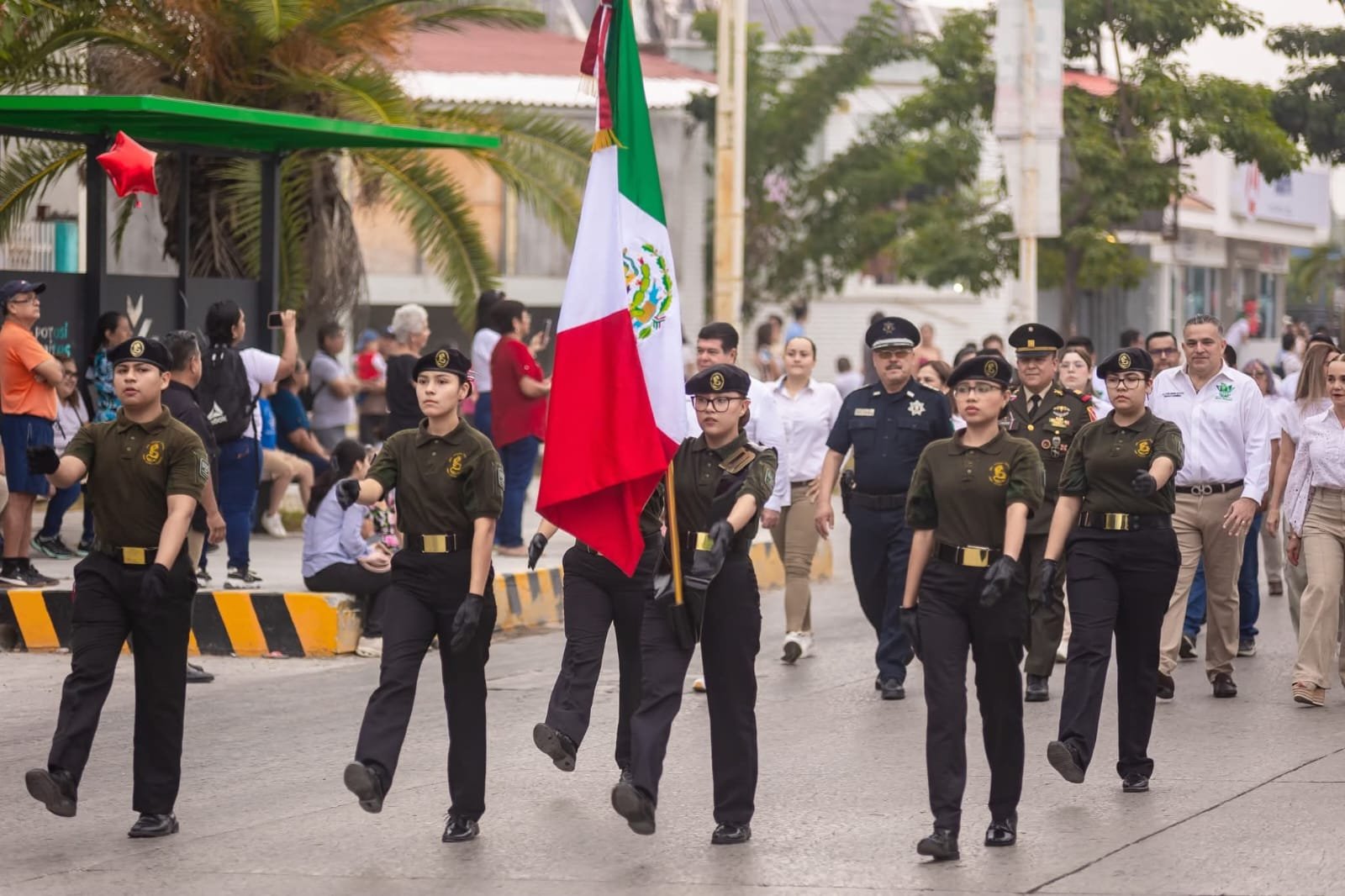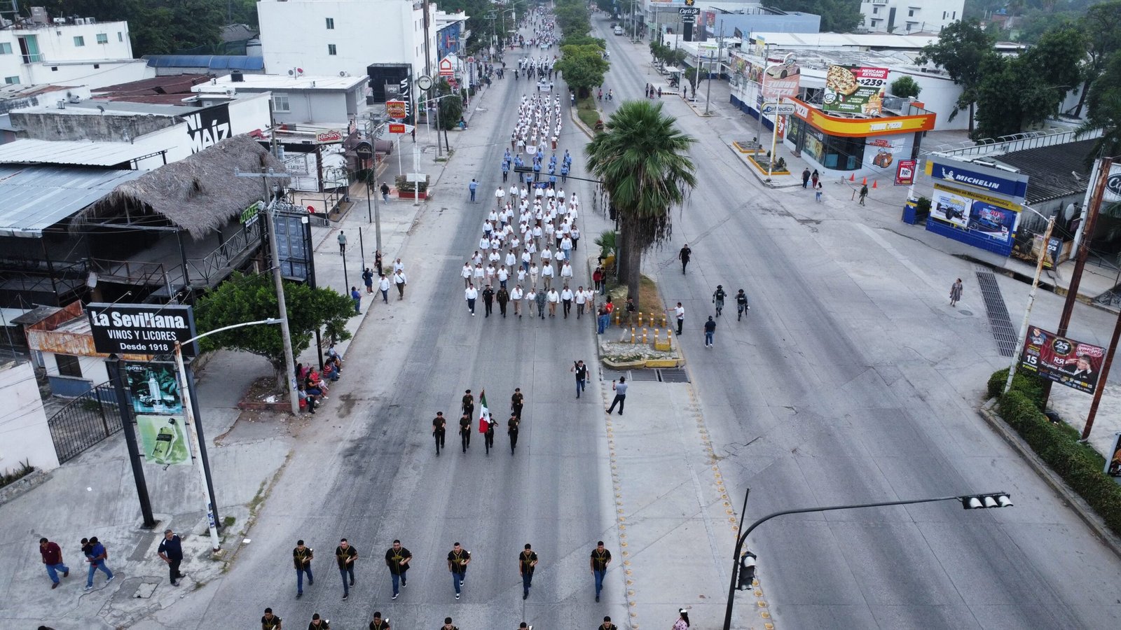 El acto conmemorativo contó con la participación de alrededor de 4 mil 200 estudiantes, de un total de 42 escuelas pertenecientes al Sistema Educativo Estatal Regular (SEER), de la Secretaría de Educación de Gobierno del Estado (SEGE); además de la participación de Corporaciones de Auxilio, de Seguridad Pública Municipal y Estatal, Parada Militar, contingentes de adultos mayores, clubes deportivos, entre otros más.