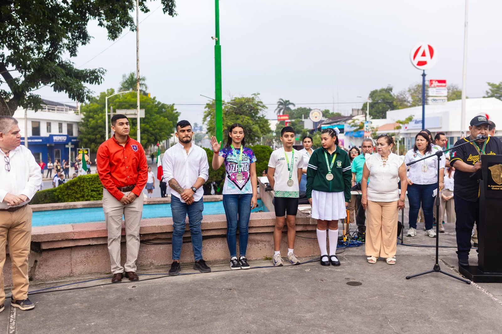 A las 07:45 horas, en la Glorieta Hidalgo, se llevó a cabo un solemne acto cívico con la participación de autoridades municipales, Regidores, autoridades educativas, personal militar del 36° Batallón de Infantería, así como otros asistentes; durante el evento se reiteró el reconocimiento a los jóvenes destacados en el ámbito deportivo y que fueron premiados con el Mérito Deportivo Municipal 2025.