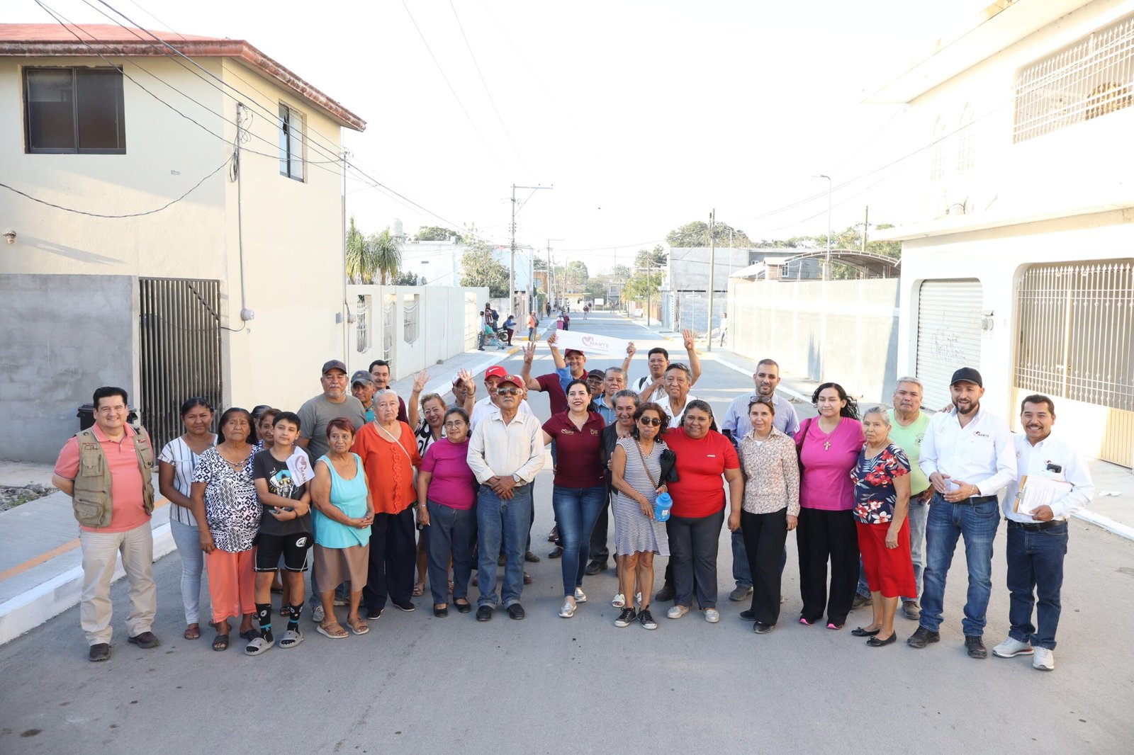 Acompañada por integrantes del Cabildo, la presidenta municipal Patty Chío realizó la entrega de la obra de pavimentación en la colonia Municipio Libre.