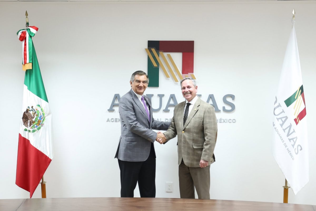 Este miércoles, acompañado de la secretaria de Economía, Ninfa Cantú Deandar, el mandatario estatal se entrevistó con el director general de Aduanas, Andre Foullon Van Lissum, quien dispuso dar celeridad a los trámites y apoyos para la construcción del recinto fiscal en la capital del estado y las ampliaciones de los puentes de Nuevo Laredo y Reynosa.