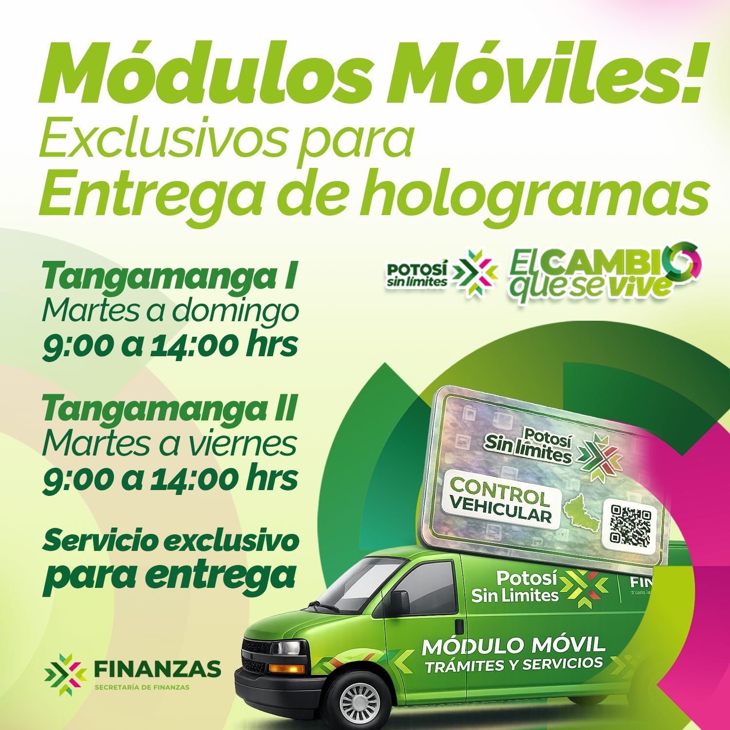 Como parte de las acciones del Gobernador Ricardo Gallardo Cardona para acercar los servicios gubernamentales, la Secretaría de Finanzas (Sefin) mantiene en operación módulos móviles para la entrega de hologramas correspondientes al ejercicio 2026. Estos puntos de atención se encuentran instalados en los Parques Tangamanga I y II, con el propósito de facilitar los trámites y fortalecer la atención sin límites.