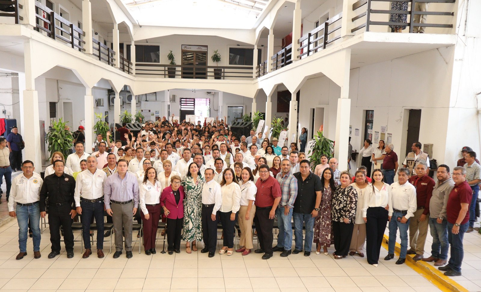 En la ceremonia estuvieron presentes integrantes del cabildo, funcionarios de los tres niveles de gobierno, estudiantes de nivel básico y superior, el Presidente de la Cámara Nacional de Comercio, representado por Amado Nuñez Nuña; Narcisa Cabriales Presidenta de la Asociación de Beneficencia y Cultura No. 11 «A B C»;