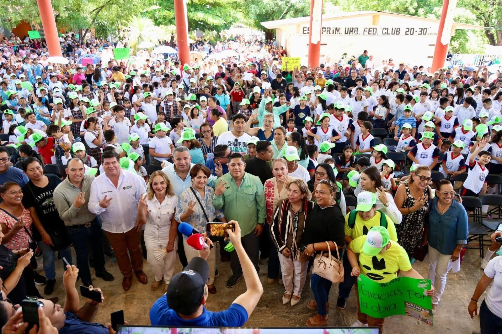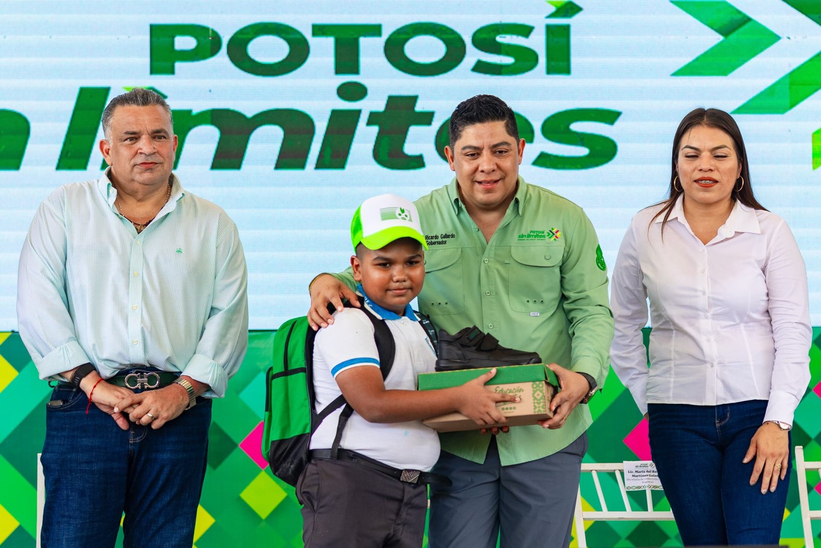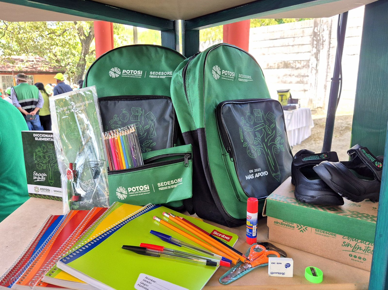 Posteriormente, el alcalde David Medina y el gobernador Ricardo Gallardo Cardona encabezaron el arranque de la entrega de paquetes de útiles escolares, zapatos y mochilas como parte del programa Educación Sin Límites, que llegará a miles de estudiantes de nivel primaria y secundaria en Ciudad Valles, contribuyendo a fortalecer su preparación académica y al mismo tiempo apoyando la economía de las familias vallenses.