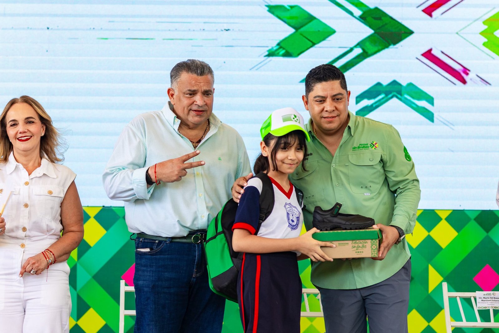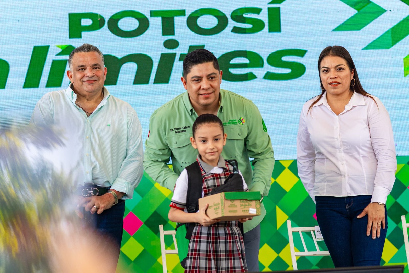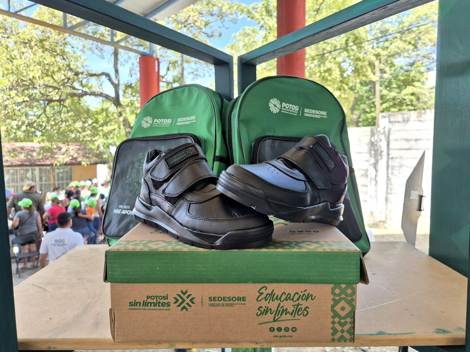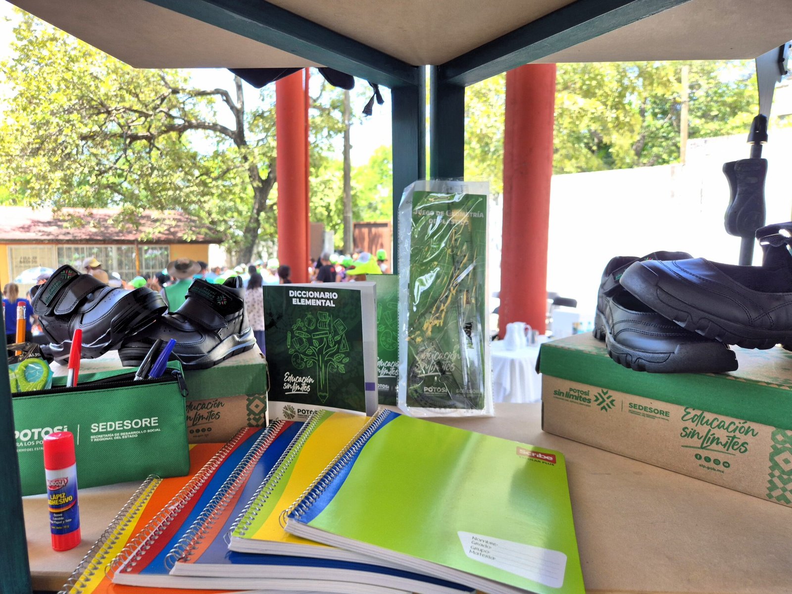 Posteriormente, el alcalde David Medina y el gobernador Ricardo Gallardo Cardona encabezaron el arranque de la entrega de paquetes de útiles escolares, zapatos y mochilas como parte del programa Educación Sin Límites, que llegará a miles de estudiantes de nivel primaria y secundaria en Ciudad Valles, contribuyendo a fortalecer su preparación académica y al mismo tiempo apoyando la economía de las familias vallenses.