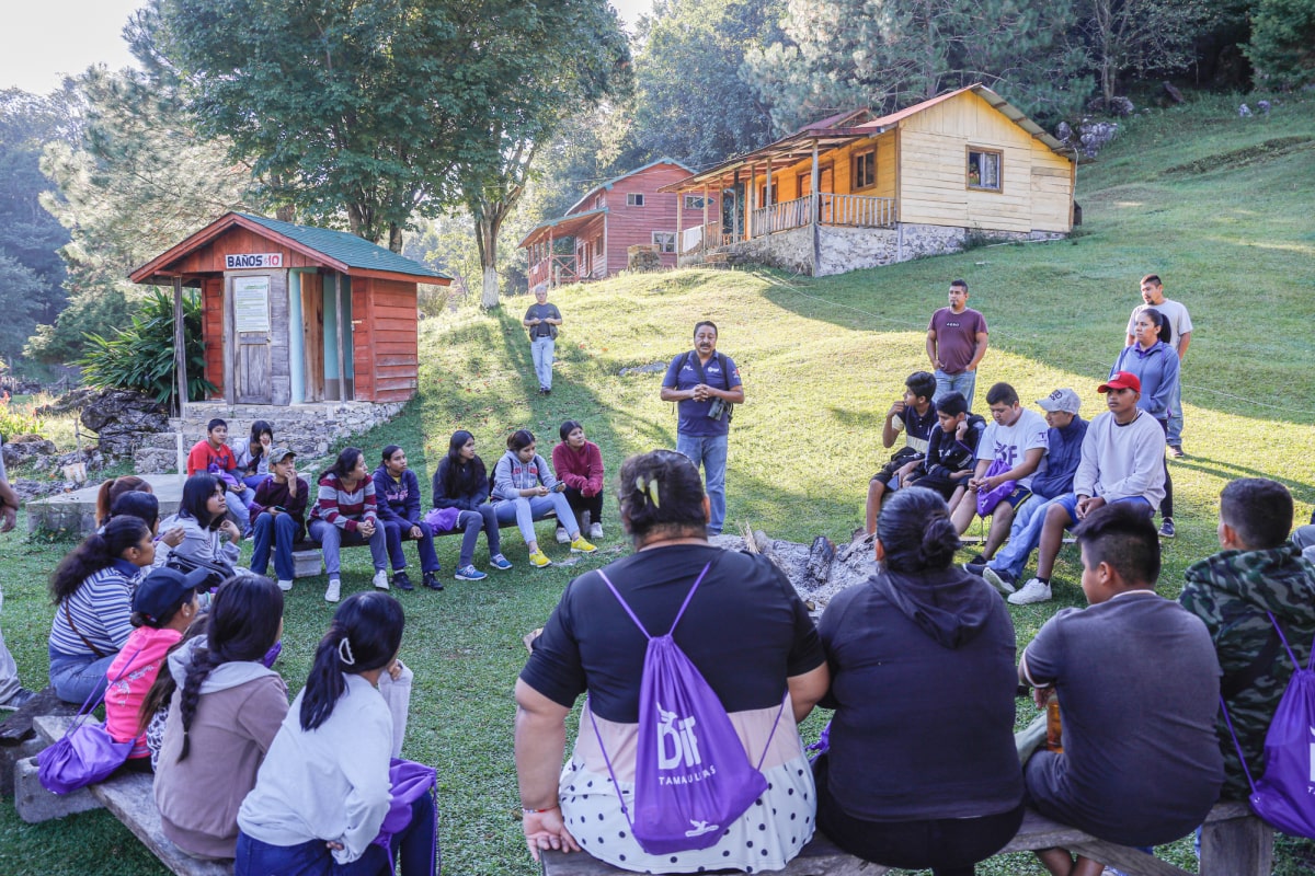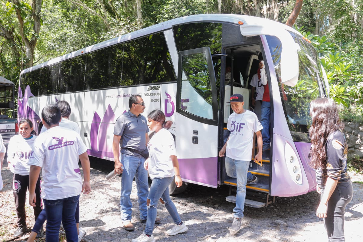 Gómez Farías, Tamaulipas.- El Sistema DIF Tamaulipas que preside la doctora María Santiago de Villarreal, junto a la Secretaría de Turismo, hicieron posible que 35 jóvenes atendidos con el programa Lazos del Bienestar visitaran por primera vez la reserva de la Biósfera “El Cielo”, el Centro Interpretativo Ecológico (CIE) y La Bocatoma.