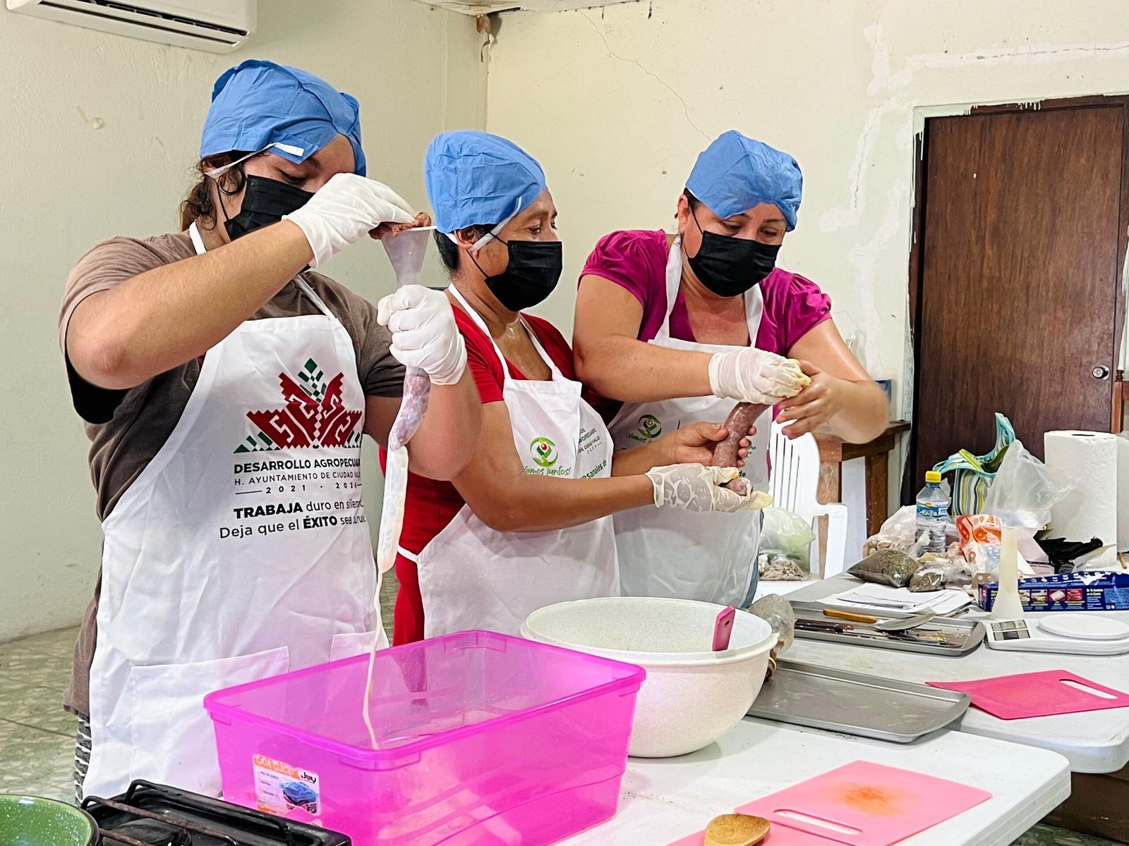 La capacitación, organizada por la Dirección de Desarrollo Agropecuario, que encabeza Juana Infante Tovar, se desarrolló los días 20 y 21 de agosto en horario de 9:00 de la mañana a 2:00 de la tarde. Durante dos jornadas, un grupo de hombres y mujeres aprendió de manera práctica la elaboración de cinco recetas de chorizo, contando con la entrega gratuita de insumos y materia prima para garantizar un proceso formativo completo.