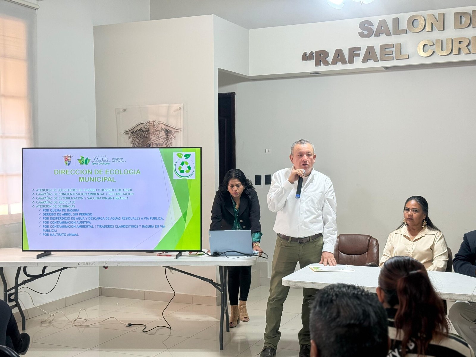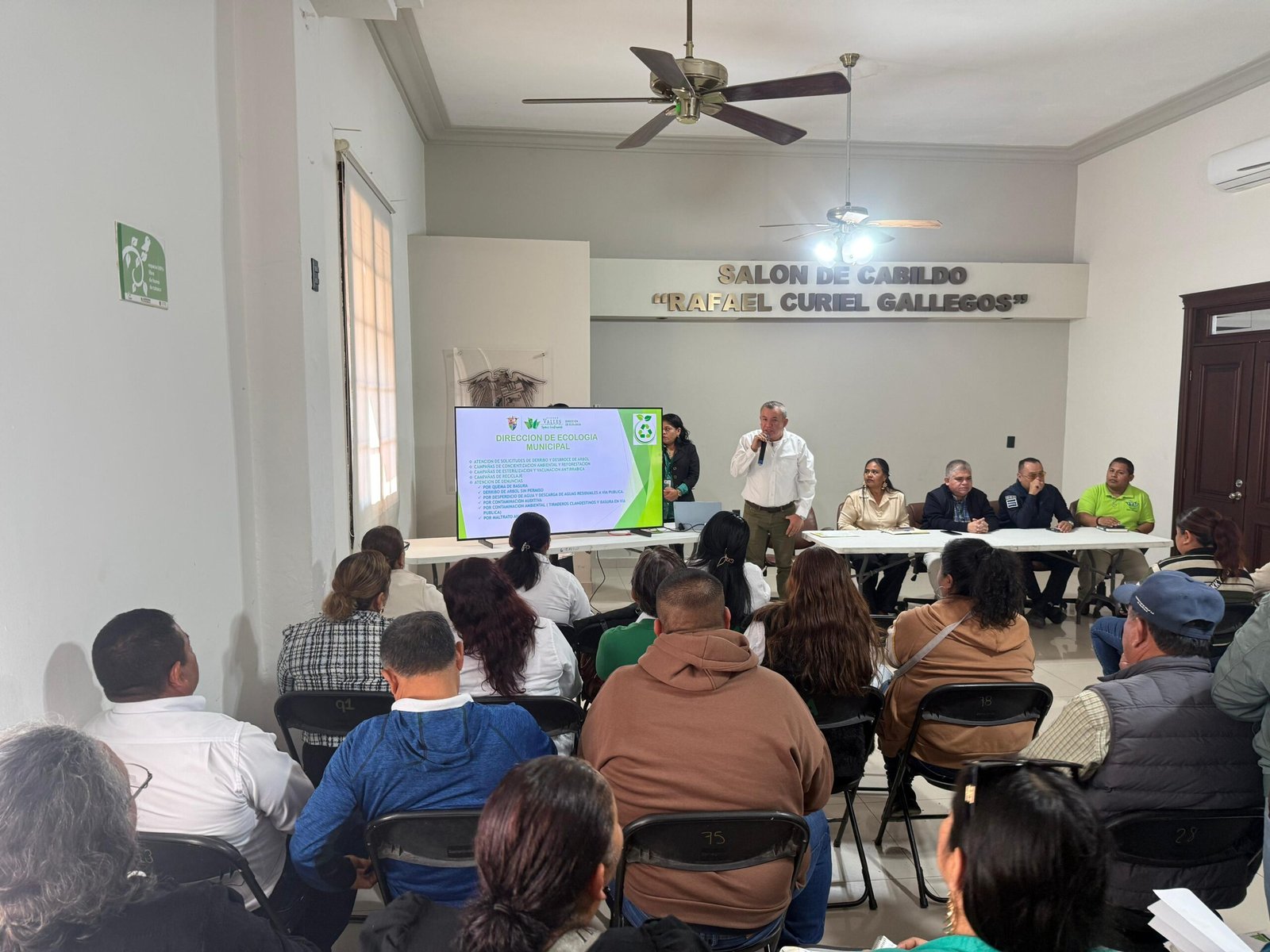 CIUDAD VALLES, S.L.P. – Este jueves, a través de la Dirección de Ecología, se llevó a cabo en el salón de Cabildo una reunión informativa dirigida a las y los consejeros de sector e integrantes del Consejo, con el objetivo de dar a conocer las actividades, programas y servicios que se realizan desde esta área, así como los trámites y gestiones que la ciudadanía puede solicitar de manera directa.