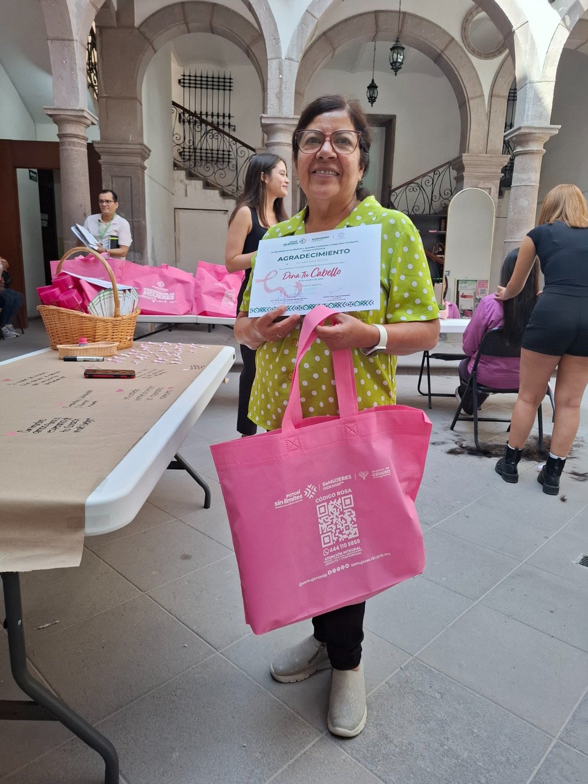 En el marco del Día Internacional de la Lucha contra el Cáncer de Mama, la Secretaría de las Mujeres e Igualdad Sustantiva (Semujeres) impulsó la campaña “Dona Tu Cabello” en coordinación con la fundación “Carpe Diem” para elaborar pelucas para mujeres que han perdido su cabello a causa del tratamiento contra el cáncer, lo cual les puede dar confianza, esperanza y fortalece su autoestima.