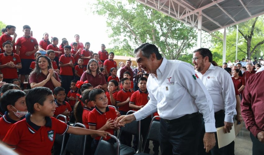 Abril 27 de 2026 Ciudad Victoria, Tamaulipas.- Construir entre todos una sociedad cada vez más justa para que todos podamos progresar es el objetivo del modelo de educación que hoy tienen los gobiernos humanistas de la transformación, afirmó el gobernador Américo Villarreal Anaya. Durante la Ceremonia Cívica de Honores, en la escuela primaria República de México, el gobernador entregó obras por más de 4 mdp y dio el banderazo de salida a camiones con 700 pupitres y 1,400 latas de pintura que se entregarán en los planteles escolares de los 43 municipios. «Que disfruten ustedes de esta niñez, que es lo más importante que tenemos los adultos, y verlos crecer sanos, y verlos crecer fuertes, y verlos crecer con mucho conocimiento para que en un futuro sean y contribuyan ustedes también al desarrollo de este gran estado», expresó. El mandatario estatal destacó también los programas de apoyo de útiles escolares, las becas, la entrega de libros de texto gratuitos, los cuidados a la salud de las niñas y niños y la capacitación permanente de las y los maestros. Al término de la ceremonia cívica, presidió además la demostración de la rutina del equipo de salto de cuerda “Los Chapulines”, ganadores de la etapa municipal, quienes asistirán a la etapa regional a finales de mayo en Tula. En el evento, el secretario de Educación, Miguel Ángel Valdez García, expresó que, además de las obras de infraestructura que hoy se entregan, el gobernador también enviará este día el nuevo escudo de Tamaulipas a todas las escuelas. «Termino diciendo la frase que acuñó hace un mes y medio la presidenta de México, la doctora Claudia Sheinbaum Pardo, y eso el gobernador hoy lo está haciendo realidad», dijo en un evento público: “La educación es el corazón de la transformación», indicó. Al dar la bienvenida, el director de la escuela República de México, Emmanuel de la Garza García, agradeció todo el apoyo del gobernador y su respuesta a las peticiones planteadas, haciendo realidad el contar ahora con material deportivo, una cancha digna, la musicalización del himno de la escuela, pintura para el plantel y mobiliario escolar, además de una unidad de baños para niñas y niños y la terminación y equipamiento de un aula escolar. «Hoy, con gratitud y mucha satisfacción, podemos decir que esos compromisos han sido cumplidos», mencionó. Acompañaron al gobernador: Arnulfo Rodríguez Treviño, secretario general de la Sección 30 del SNTE; Tania Gisela Contreras López, magistrada presidenta del Supremo Tribunal de Justicia; el diputado Sergio Ojeda Castillo, presidente de la Mesa Directiva del Congreso del Estado, y el alumno Santiago Alonso Barrón Reyna.