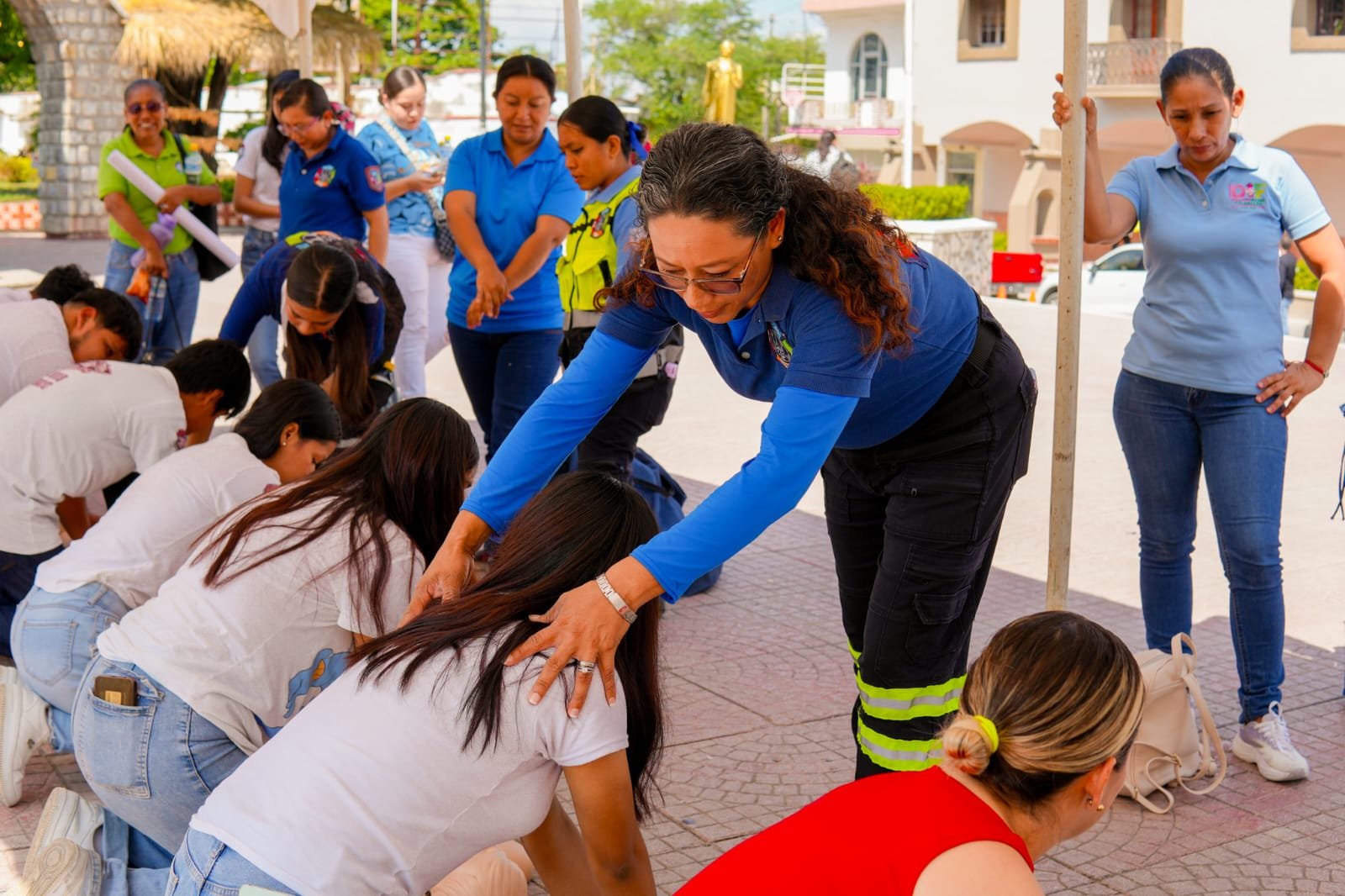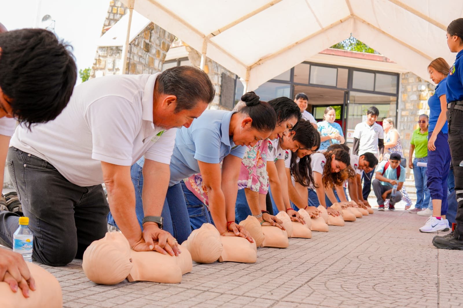 La plática de acciones preventivas y de primeros auxilios estuvo a cargo de la Dirección de Planeación Estratégica, que dirige Andrés Vázquez Torres; la Coordinación Municipal de Derechos Humanos, a cargo de Verónica Rodríguez Galván; en coordinación con brigadistas del Equipo de Respuesta Comunitaria en Emergencias y Desastres (ERCED), que preside Víctor Hugo Torres Otero.