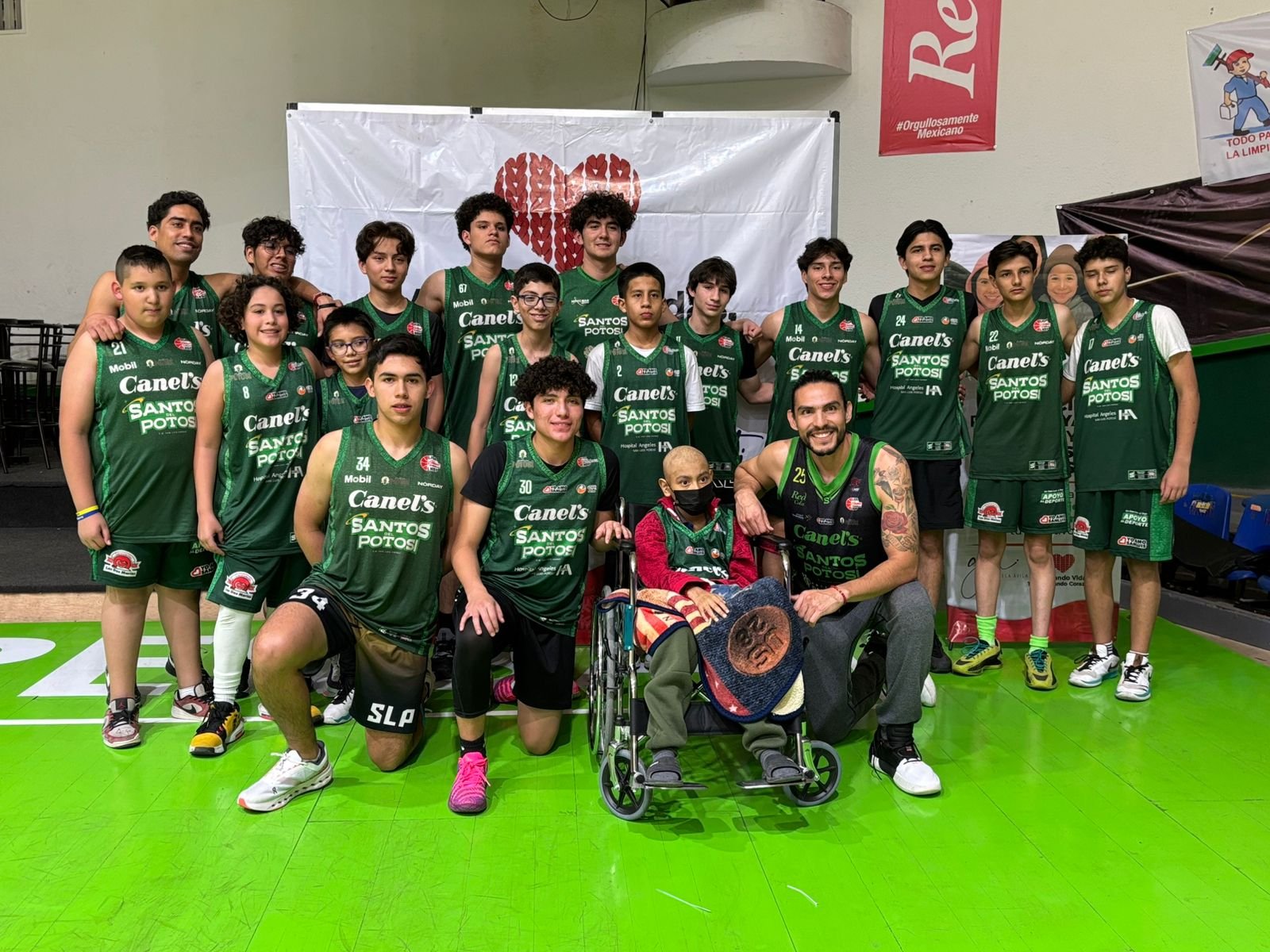 Víctor Emanuel, un niño de 11 años originario de Huehuetlán que lucha contra el cáncer y sueña con ser basquetbolista profesional, vivió una experiencia inolvidable al integrarse simbólicamente a los Santos del Potosí.