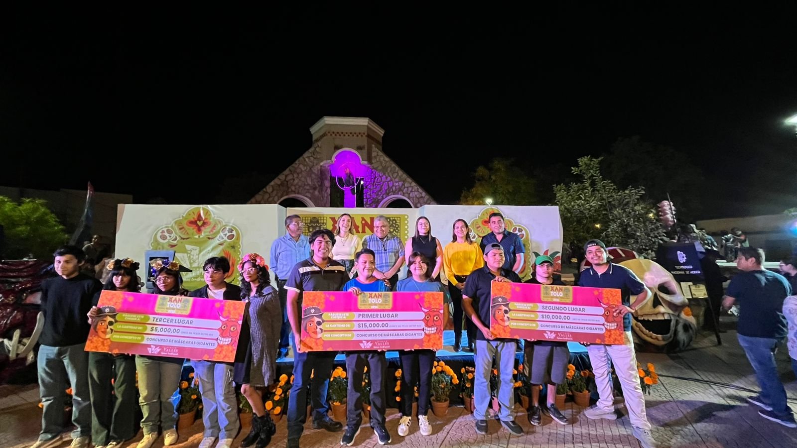 CIUDAD VALLES.-Con la máscara denominada “El Comanche”, estudiantes del 11vo semestre de Ingeniería Industrial, y del 5to semestre de Gestión Empresarial, del Tecnológico Nacional de México campus Valles, se llevaron el primer lugar del concurso de Máscaras Gigantes con un incentivo económico de 15 mil pesos, realizado la noche de este jueves.