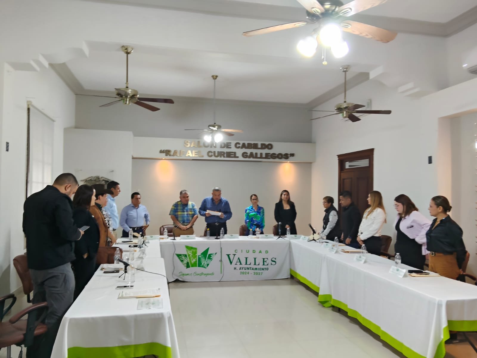 CIUDAD VALLES, S.L.P.- Durante la mañana de este lunes se llevó a cabo la Décima Sesión Extraordinaria de Cabildo, encabezada por el Presidente Municipal David Armando Medina Salazar, con la participación de síndicos, regidoras y regidores, así como del Secretario General del Ayuntamiento, Luis Ángel Contreras Malibrán, en la que se analizaron y aprobaron diversos proyectos de decreto turnados por el Congreso del Estado de San Luis Potosí.