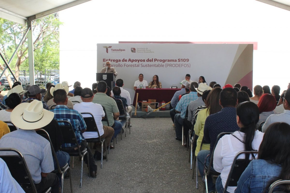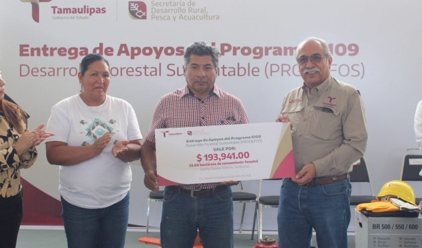 Marzo 20 de 2026 Ciudad Victoria, Tamaulipas.– Con el firme compromiso de fortalecer las capacidades de manejo, conservación y aprovechamiento sustentable de los ecosistemas forestales en el estado, la Secretaría de Desarrollo Rural, Pesca y Acuacultura, a través de la Subsecretaría de Desarrollo Pecuario y Forestal, llevó a cabo la entrega de apoyos correspondientes al Programa de Desarrollo Forestal Sustentable 2026. El titular de la dependencia, Antonio Varela Flores, destacó que estas acciones, impulsadas por el gobernador Américo Villarreal Anaya, contribuyen a consolidar la implementación de políticas públicas orientadas a mantener el equilibrio entre la productividad del sector y la protección del medio ambiente, al tiempo que se impulsa el bienestar de las comunidades rurales. “En el presente año se implementaron un total de 61 proyectos, los cuales han beneficiado aproximadamente a mil 500 productores forestales, contribuyendo de manera significativa al fortalecimiento del desarrollo sustentable en el sector forestal”, comentó. Como parte de esta entrega, se otorgaron apoyos para la apertura de brechas cortafuego, así como para la construcción de una techumbre de 100 metros cuadrados destinada al almacenamiento de carbón vegetal en el ejido Las Águilas, municipio de Soto la Marina. Asimismo, se respaldó la instalación de 2.7 kilómetros de cercado de protección en el municipio de Abasolo. De igual manera, se destinaron recursos para el saneamiento de 39.08 hectáreas en el Conjunto Puerto Paraíso, en el municipio de Victoria, además de la rehabilitación de caminos forestales y brechas cortafuego en los municipios de Jaumave y Casas. En apoyo directo a productores forestales, integrantes del ejido Rafael Villarreal, en Soto la Marina, y del ejido El Nogalito, en Casas, recibieron un total de 20 motosierras, fortaleciendo así sus actividades de aprovechamiento forestal. “Seguimos trabajando de manera coordinada y con determinación para que Tamaulipas continúe siendo un estado que protege sus recursos forestales, los aprovecha de forma responsable y contribuye a mejorar la calidad de vida de sus habitantes”, concluyó el secretario. Durante su intervención, el subsecretario de Desarrollo Pecuario y Forestal, Cuauhtémoc Amaya García, destacó que la voluntad del Gobierno del Estado de Tamaulipas se une con la fuerza y el trabajo de las comunidades forestales. Asimismo, afirmó que hoy el Gobierno de Tamaulipas entrega resultados tangibles que permanecerán en las comunidades, e invitó a las y los beneficiarios a sentirse orgullosos de su labor, ya que gracias a ellos Tamaulipas continúa siendo un referente de riqueza natural en México. Durante el evento estuvieron presentes Celene Ramírez García, directora de Fomento Forestal; Yuridiana Moreno Rocha, titular del Órgano de Control Interno; Gloria Vázquez Guerra, tesorera del Comisariado del ejido Las Flores, municipio de Bustamante; Patricia Porras Escamilla, directora de Seguimiento de Programas; Alonso Macías Corral, asesor técnico; además de productores forestales beneficiarios del programa.