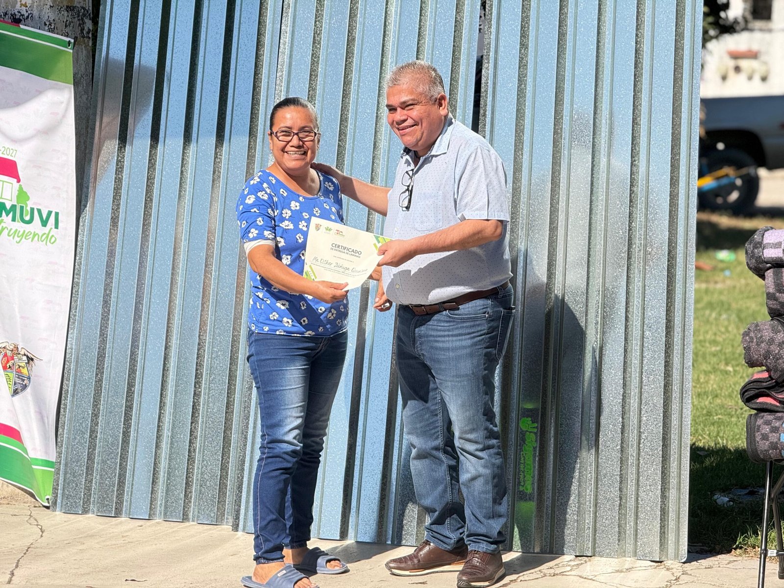 CIUDAD VALLES, S.L.P. – El H. Ayuntamiento de Ciudad Valles, a través del Instituto Municipal de la Vivienda, realizó esta mañana la segunda entrega del programa “Sigamos Construyendo”, consistente en 20 paquetes de láminas galvanizadas subsidiadas para familias de la colonia Mujeres en Solidaridad, como parte de la encomienda del Presidente Municipal David Armando Medina Salazar de acercar apoyos reales a los hogares que más lo necesitan.