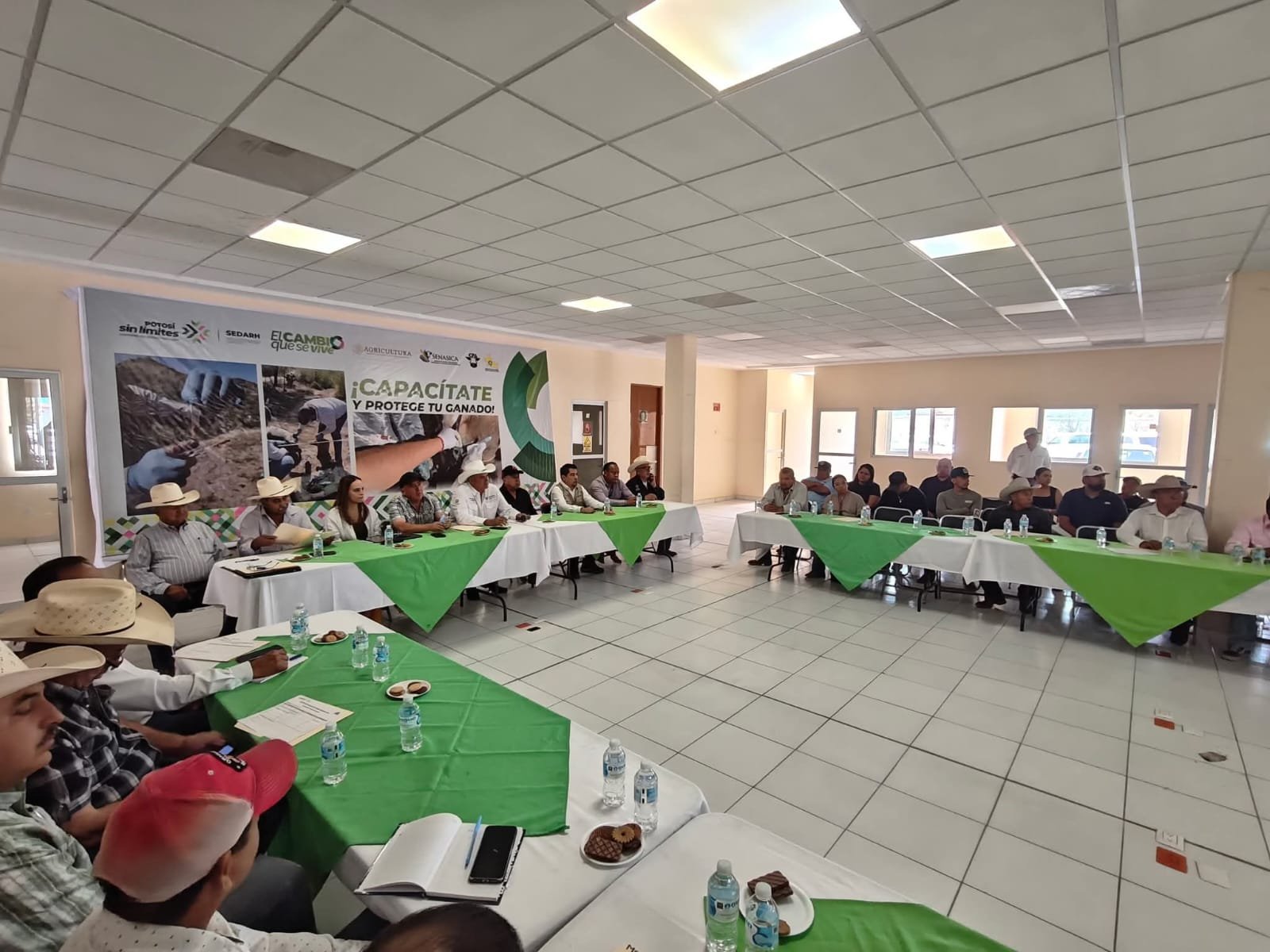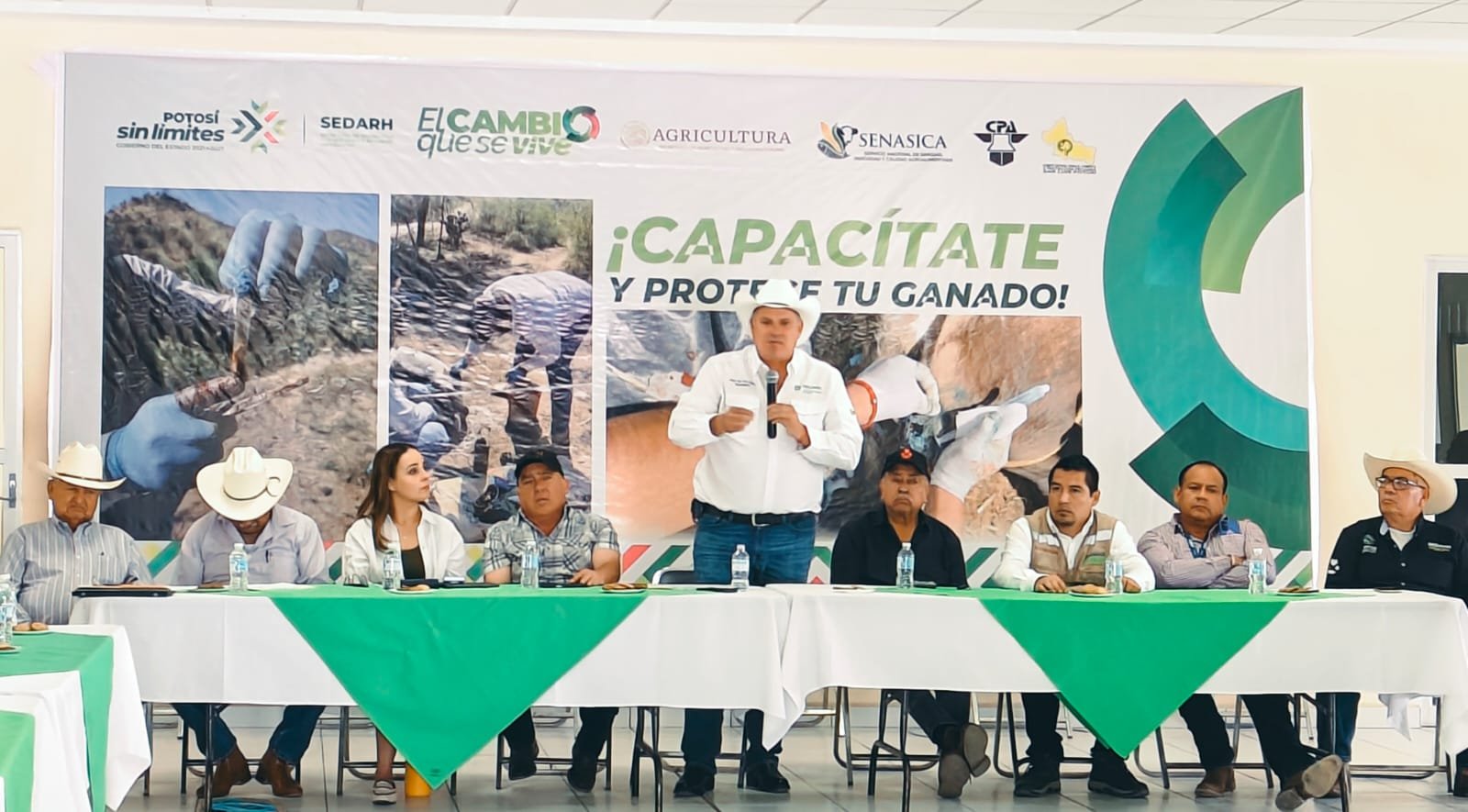 Durante este fin de semana, especialistas de la Secretaría de Desarrollo Agropecuario y Recursos Hidráulicos (Sedarh), encabezada por Jorge Luis Díaz Salinas, en coordinación con la Comisión México–Estados Unidos para la Prevención de Enfermedades Exóticas y la Fiebre Aftosa (CPA) y el Servicio Nacional de Sanidad, Inocuidad y Calidad Agroalimentaria (Senasica), brindaron capacitación a autoridades de Desarrollo Rural, asociaciones ganaderas locales y la Unión Ganadera Regional de San Luis Potosí, reforzando estrategias sin límites para prevenir y controlar esta plaga.