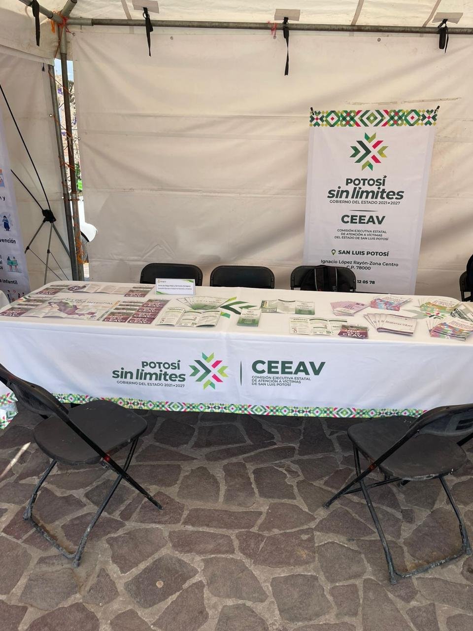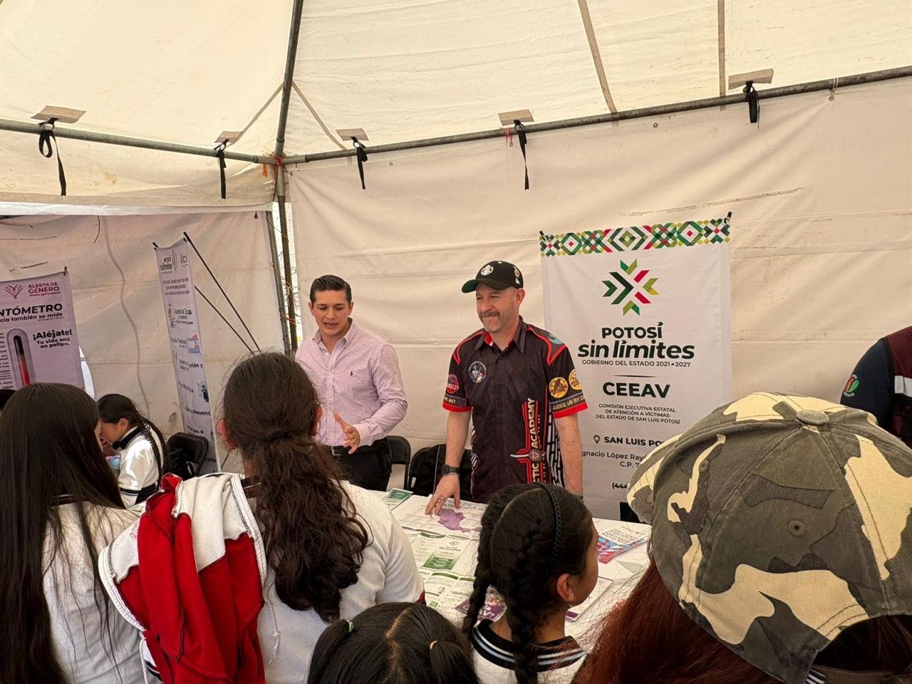 Como parte del impulso sin límites del Gobernador Ricardo Gallardo Cardona para garantizar atención cercana y fortalecer la convivencia social, la Secretaría General de Gobierno (SGG), a través de la Comisión Ejecutiva Estatal de Atención a Víctimas (CEEAV), participó en la Feria de Seguridad y Servicios realizada en Villa de Zaragoza, donde brindó orientación directa a la población sobre acompañamiento integral para personas afectadas por algún delito.