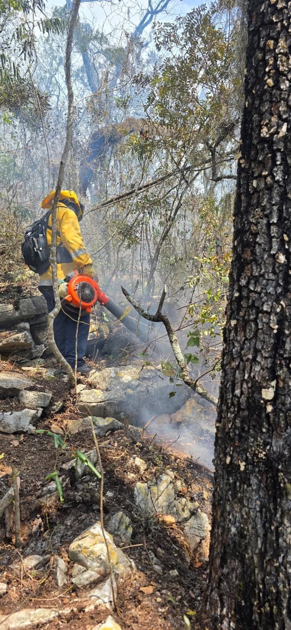 Diariamente, en un horario de 05:00 a 20:00 horas, más de 120 combatientes trabajan en la zona utilizando herramientas como motosierras, sopladoras, rastrillos, machetes y escobas metálicas, además de contar con equipo de protección especializado. En estas acciones también participan de manera coordinada la Secretaría de la Defensa Nacional (SEDENA), Comisión Nacional Forestal (CONAFOR), autoridades municipales, así como voluntarios, reflejando el cambio que se vive y se siente en la capacidad de respuesta ante emergencias.