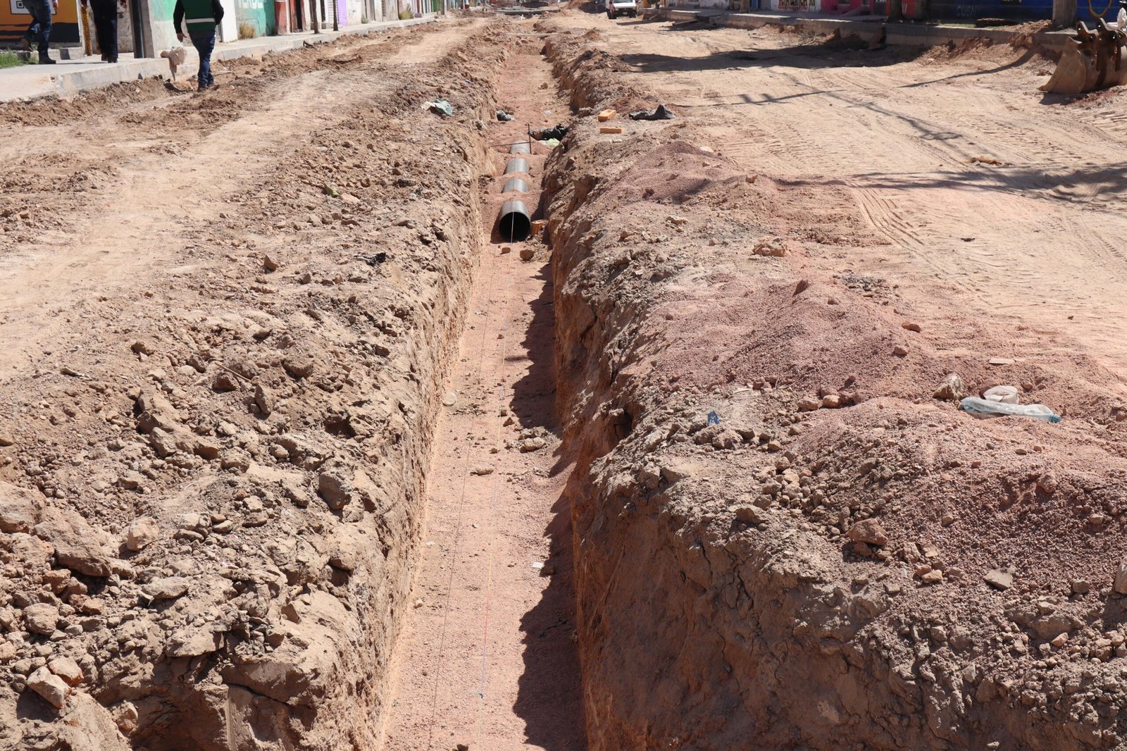 La titular de la dependencia, Isabel Leticia Vargas Tinajero, supervisó los trabajos en los distintos frentes de obra. Detalló que del tramo 3ª Norte a Circuito Potosí se prepara y compacta la base para colocar la capa hidráulica, mientras que de Circuito Potosí a Cordillera Oriental se instalan las redes de agua potable y drenaje sanitario. Estas acciones reflejan el cambio tangible en calles más funcionales y un tránsito más ordenado.