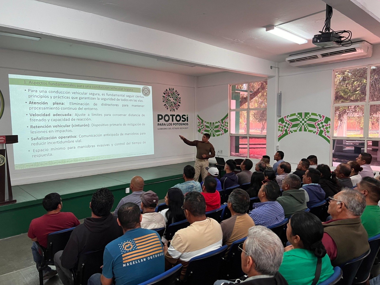 De acuerdo con la estrategia del Gobernador Ricardo Gallardo Cardona para la mejora de los servicios públicos, la Secretaría de Seguridad y Protección Ciudadana (SSPC) y la Secretaría de Comunicaciones y Transportes (SCT) realizaron un curso de capacitación dirigido a cerca de 70 operadores de transporte público en la región Media. Este esfuerzo se enmarca en un impulso sin límites para fortalecer la preparación de quienes brindan servicio diariamente a la ciudadanía.