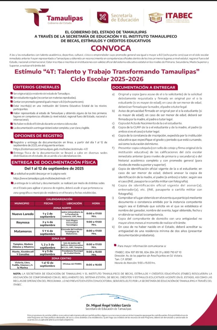 Estímulo «4T: Talento y Trabajo Tranformando Tamaulipas «.