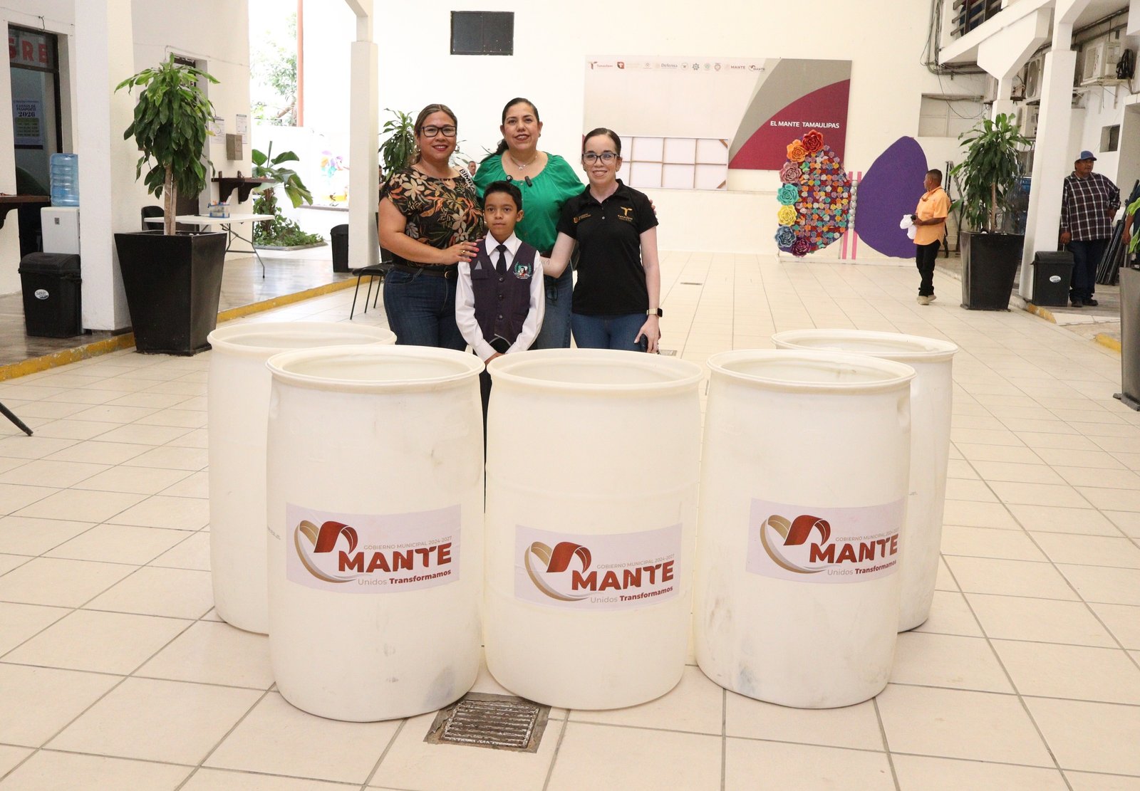 ​Acompañada por integrantes del Cabildo, la presidenta realizó la entrega en la explanada de la Presidencia Municipal, donde se dotó de botes de basura a la Escuela Primaria “Sor Juana de Asbaje”, fomentando espacios más limpios y adecuados para el desarrollo integral de las y los estudiantes.