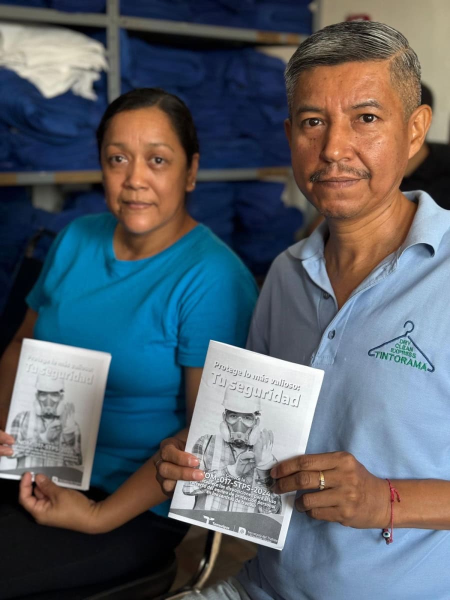 Noviembre 26 de 2025 Ciudad Victoria, Tamaulipas.- La Secretaría del Trabajo y Previsión Social llevó a cabo la capacitación “NOM-017-STPS-2024, Equipo de protección personal-Selección, uso y manejo en los centros de trabajo”, dirigida a personal del giro de lavanderías industriales, con el propósito de reforzar conocimientos sobre prevención de riesgos y promover entornos laborales más seguros. El titular de la STPS, Luis Gerardo Illoldi Reyes, destacó la importancia de que las empresas cuenten con herramientas técnicas actualizadas que les permitan identificar riesgos, seleccionar el Equipo de Protección Personal (EPP) adecuado conforme a la normatividad vigente y garantizar condiciones que protejan la salud de las y los trabajadores. Durante el desarrollo del programa, la directora general de Inspección y Previsión Social, Consuelo Nallely Lara Monroy, resaltó que el cumplimiento de la NOM-017-STPS-2024 es fundamental para prevenir accidentes laborales, fomentar buenas prácticas en el manejo y conservación del EPP, y fortalecer la cultura de seguridad en todos los centros de trabajo. La capacitación, impartida por Karol García Gamez, proporcionó conocimientos esenciales sobre la selección, certificación, uso, mantenimiento y disposición final del EPP, contribuyendo al cumplimiento de los lineamientos establecidos por la STPS.Lara Monroy señaló que con estas acciones, la secretaría reafirma su compromiso con la protección de la fuerza laboral tamaulipeca y con el impulso de entornos laborales seguros, productivos y alineados a la normativa en materia de seguridad y salud.