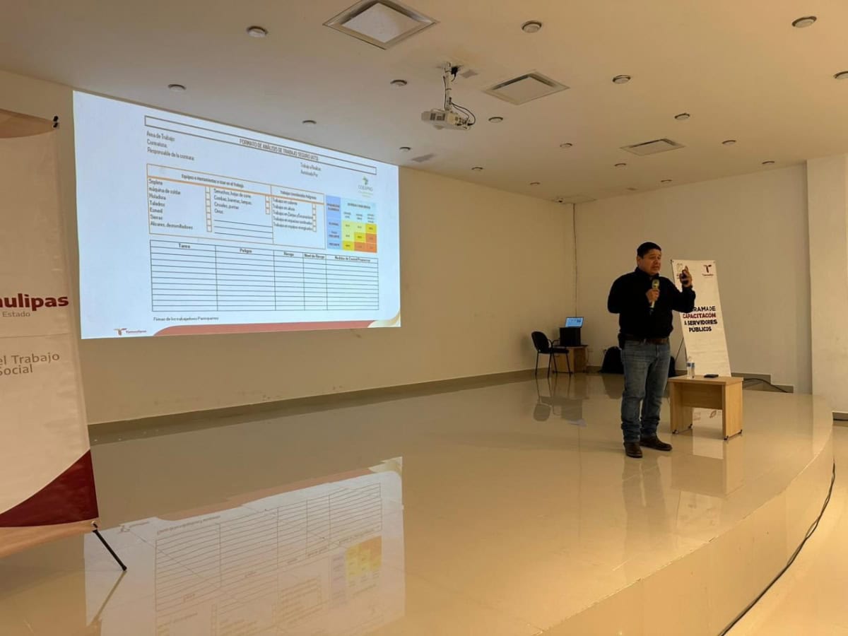 Noviembre 03 de 2025 Nuevo Laredo, Tamaulipas.- Con el propósito de garantizar ambientes de trabajo más seguros y saludables, la Secretaría del Trabajo y Previsión Social de Tamaulipas impulsa la Jornada de Capacitación en Seguridad, Salud e Higiene Laboral dirigida al personal del Gobierno Municipal de Nuevo Laredo, iniciativa que busca reforzar las competencias del personal en materia de prevención de riesgos laborales. Durante esta jornada se abordan temas fundamentales como la inducción a la seguridad e higiene, el sistema armonizado de identificación de peligros y riesgos de sustancias químicas (NOM-018-STPS-2015), los principios básicos de la NOM-017-STPS-2024 sobre equipo de protección personal, así como la NOM-036-1-STPS-2018 referente a factores ergonómicos, con el objetivo de dotar a las y los trabajadores de las herramientas teóricas y prácticas necesarias para prevenir y controlar los riesgos presentes en sus áreas de trabajo. El secretario del Trabajo y Previsión Social, Luis Gerardo Illoldi Reyes, refrendó su respaldo a estas acciones que promueven una gestión preventiva efectiva, destacando que la capacitación constante fortalece la cultura de la seguridad laboral y contribuye al cumplimiento de las normas oficiales en beneficio del personal municipal. Subrayó además que la coordinación con los gobiernos locales es clave para avanzar hacia centros de trabajo más seguros y productivos. Por último, señaló que el Gobierno de Tamaulipas, encabezado por Américo Villarreal Anaya, reafirma su compromiso con un modelo humanista y de transformación, que prioriza la dignidad, bienestar y desarrollo integral de las y los trabajadores del estado.
