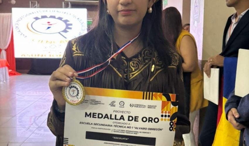 Octubre 11 de 2025 Asunción, Paraguay.– Con el proyecto “XocolHTA”, la estudiante Keily Flores Pantoja, de la Escuela Secundaria Técnica No. 1 “Álvaro Obregón” de Ciudad Victoria, brilló en la Feria de Ciencias CIENCAP 2025, celebrada del 6 al 10 de octubre en Paraguay, al ganar la Medalla de Oro en el área de Medicina y Salud. Julio Martínez Burnes, director general del Consejo Tamaulipeco de Ciencia y Tecnología (COTACYT), explicó que el proyecto de Keily tiene como propósito el desarrollo de un producto nutracéutico auxiliar en el control de la hipertensión arterial, orientado a prevenir complicaciones graves como paros cardiacos o derrames cerebrales, mediante el aprovechamiento de componentes naturales del cacao. Indicó que la alumna contó con la asesoría de la Mtra. María de los Ángeles Robledo Aria, y precisó que “XocolHTA” obtuvo su acreditación internacional tras destacar en la ExpoCiencias Nacional 2024, realizada en diciembre del año pasado en Villahermosa, Tabasco, donde representó a Tamaulipas entre los mejores proyectos científicos juveniles del país. Resaltó que este éxito internacional reafirma el talento, la creatividad y la vocación científica de la juventud tamaulipeca, así como el compromiso del personal docente de la entidad por fomentar la investigación y la innovación desde los primeros niveles educativos. Subrayó que este logro también fue posible gracias al respaldo del Gobierno del Estado de Tamaulipas y de la Secretaría de Educación de Tamaulipas, que, bajo el liderazgo de Américo Villarreal Anaya y Miguel Ángel Valdez García, respectivamente, y a través del Programa de Formación de Capital Humano del COTACYT, impulsan la participación de estudiantes en escenarios nacionales e internacionales, fortaleciendo la formación científica y tecnológica con impacto social, y posicionando a Tamaulipas como un referente en ciencia, tecnología e innovación.