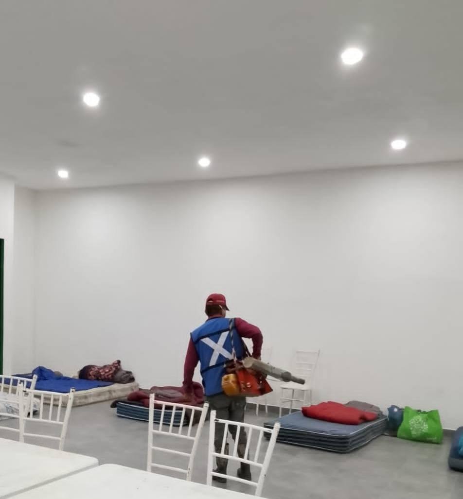 Jurisdicciones Sanitarias VI y VII apoyan con desinfección y fumigación en albergues.