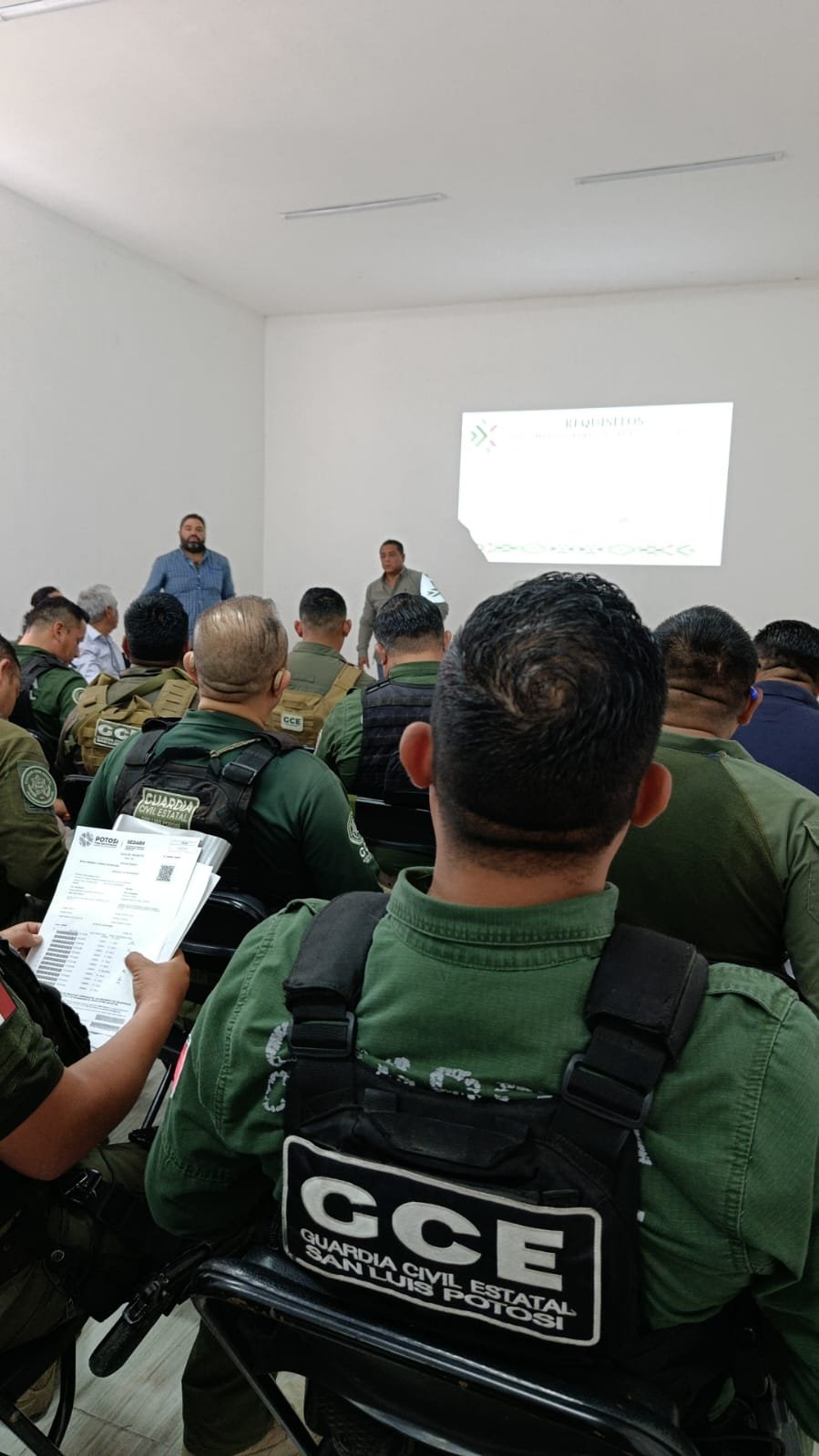 Como parte del trabajo sin límites del Gobernador Ricardo Gallardo Cardona para reforzar las capacidades de atención y garantizar una movilización pecuaria ordenada y segura, la Secretaría de Seguridad y Protección Ciudadana (SSPC) capacitó a más de 50 elementos de la Guardia Civil Estatal (GCE) de la Huasteca sobre el marco legal, los procedimientos y acciones a seguir para el transporte de animales y alimentos.